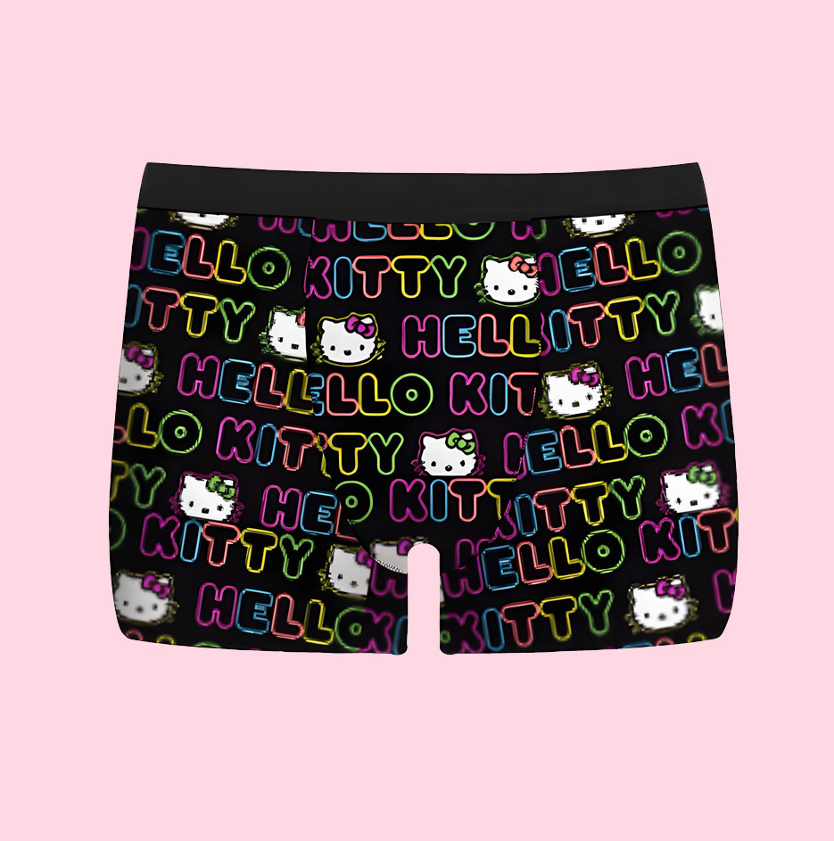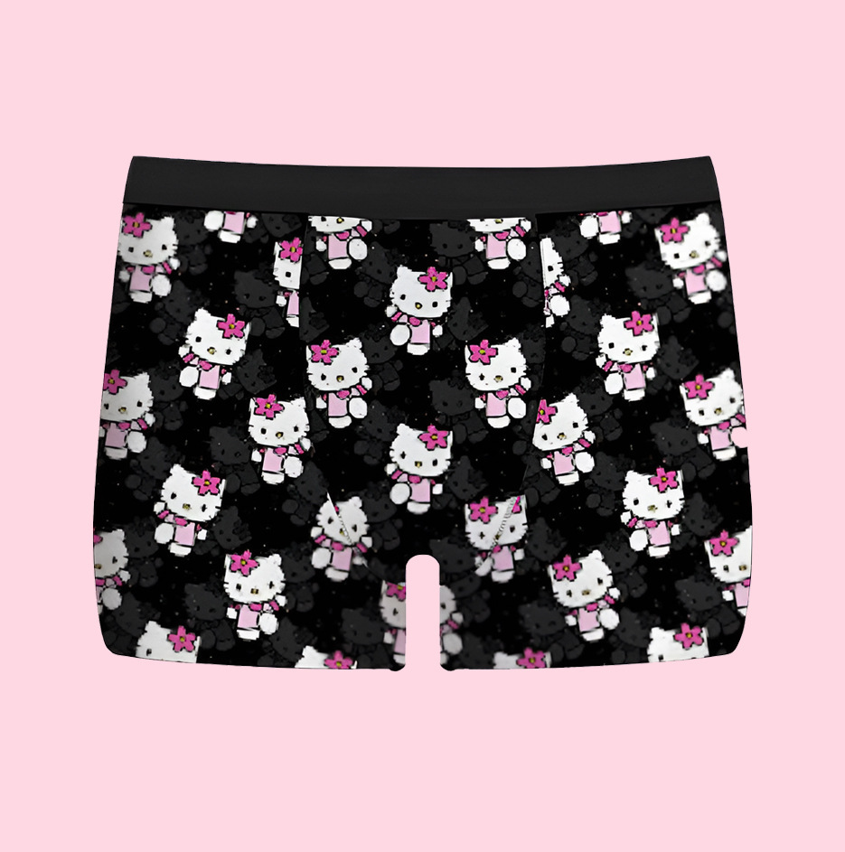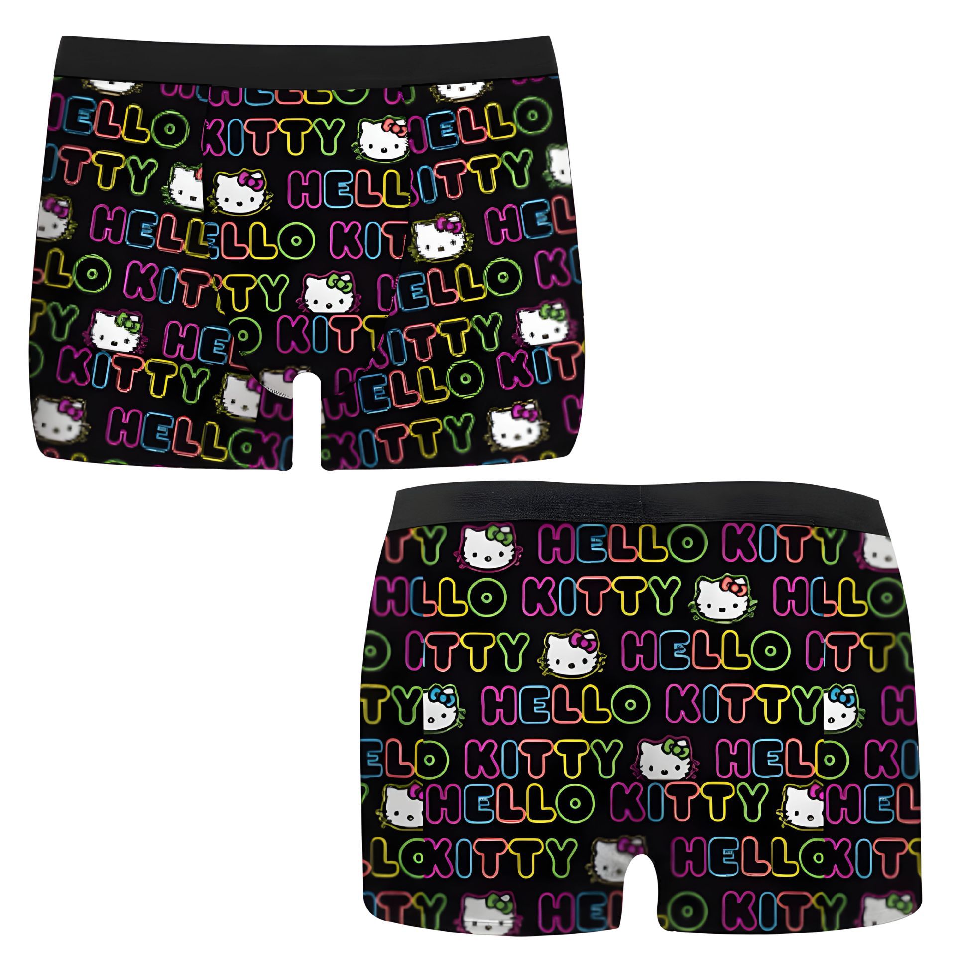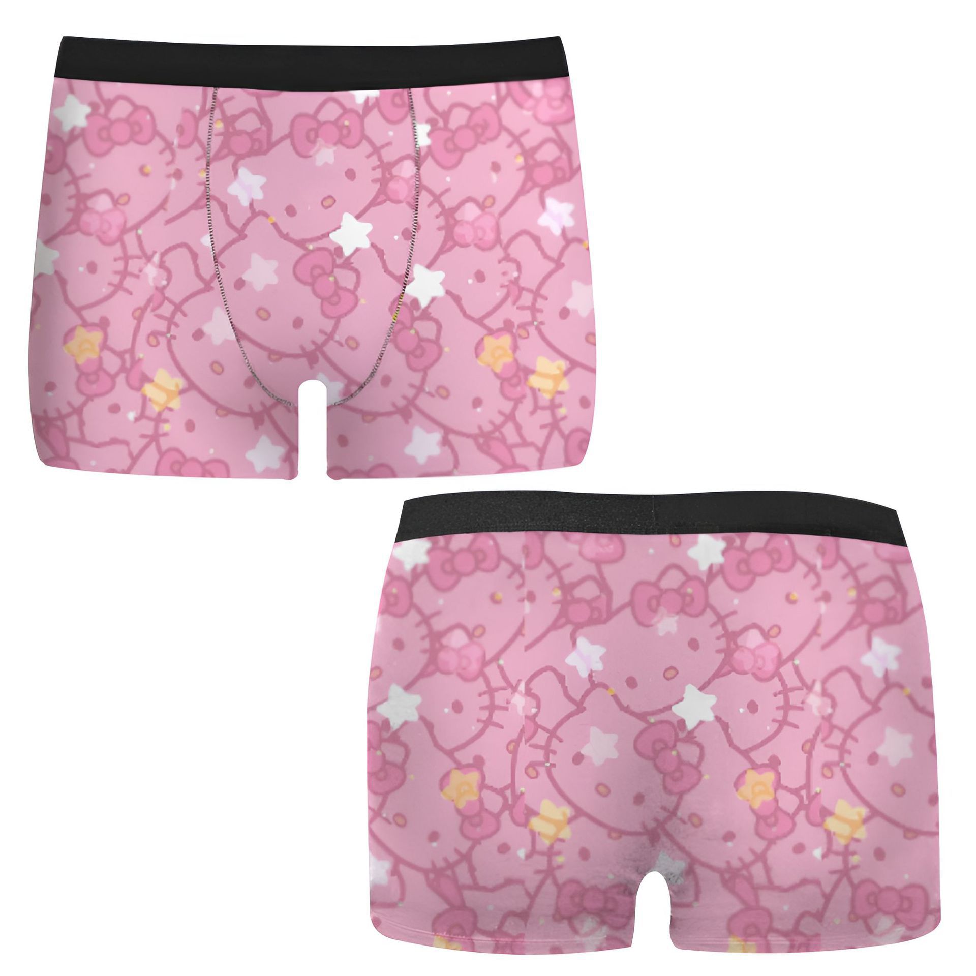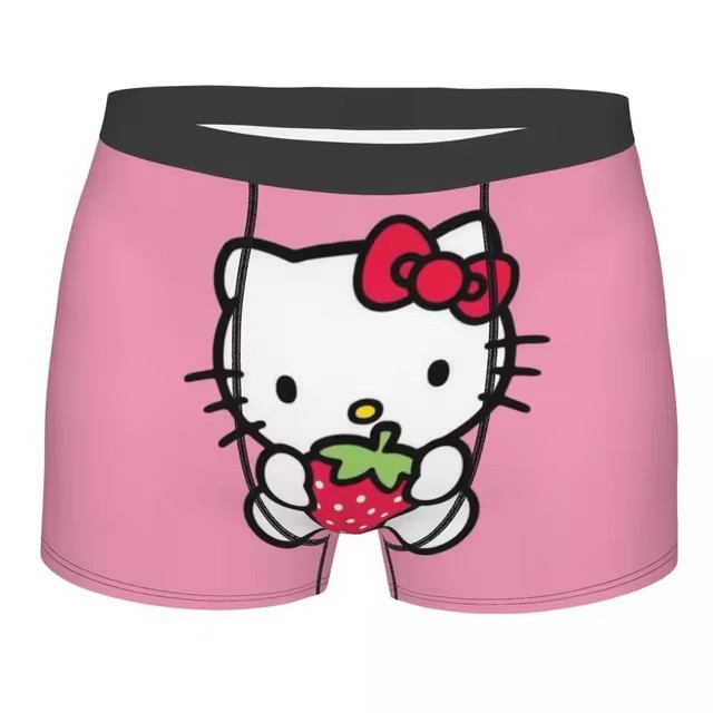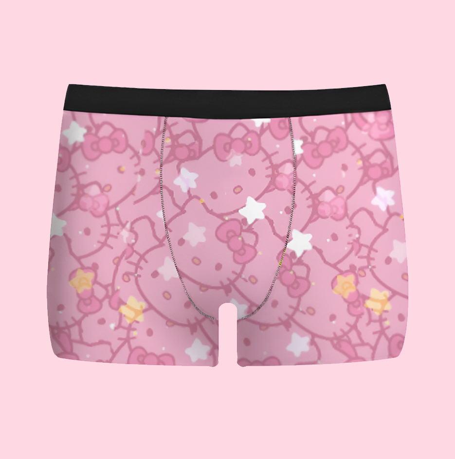 도매 우유 실크 남자의 복서 팬티 헬로 키티 고양이 귀여운 3D 인쇄 중간 허리 남자 복서 팬티스토어 가기
