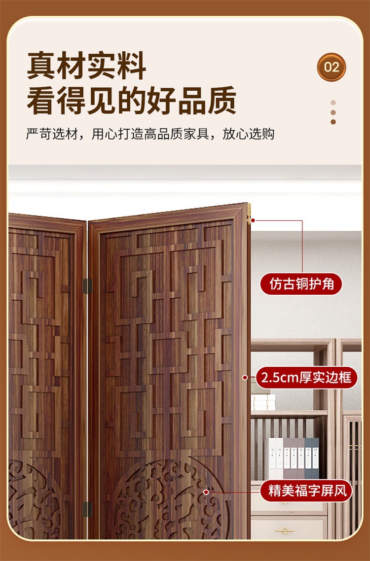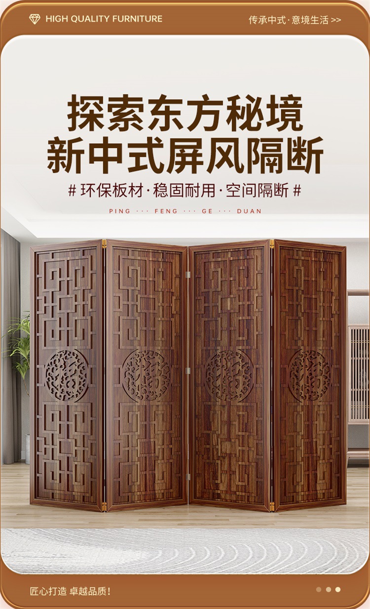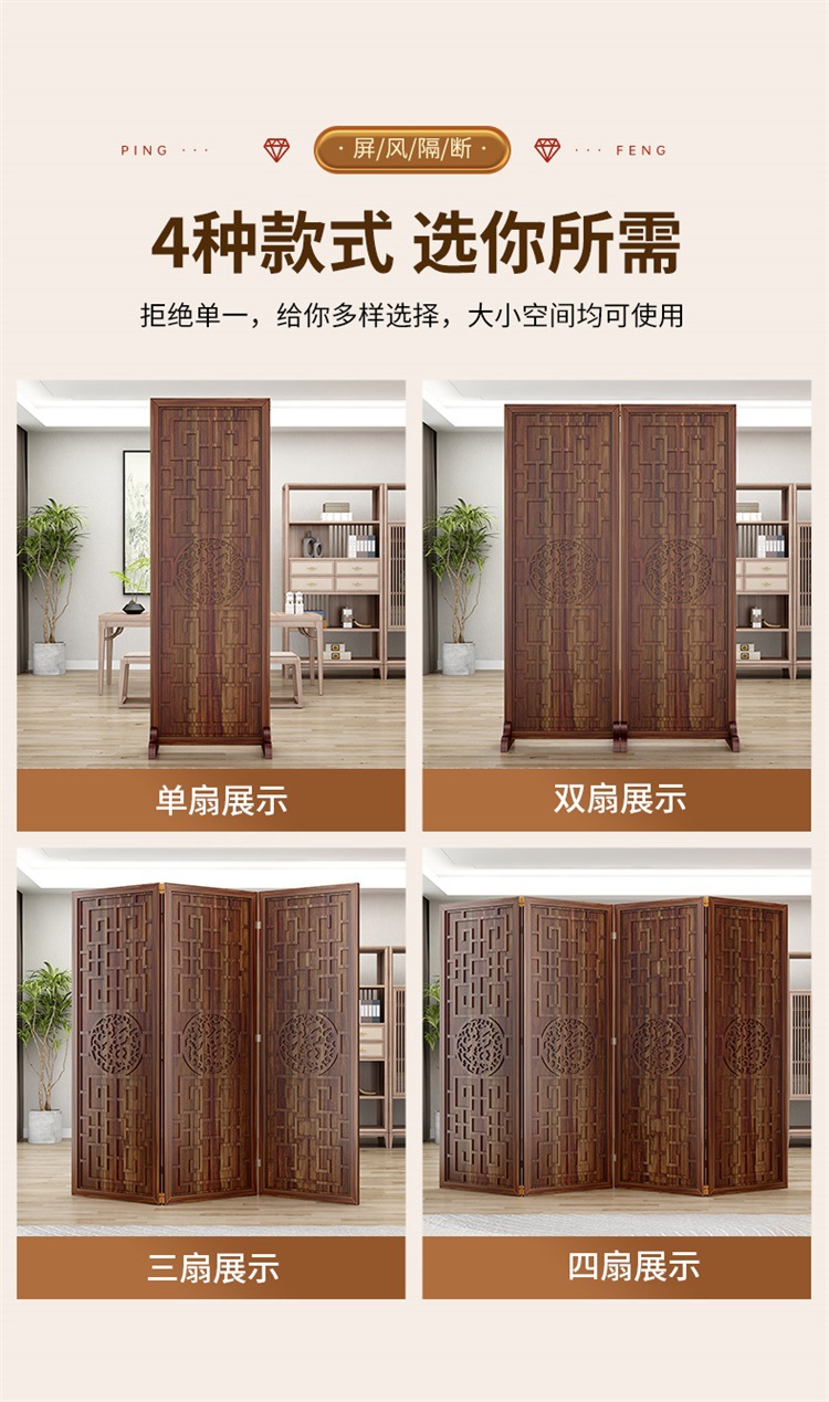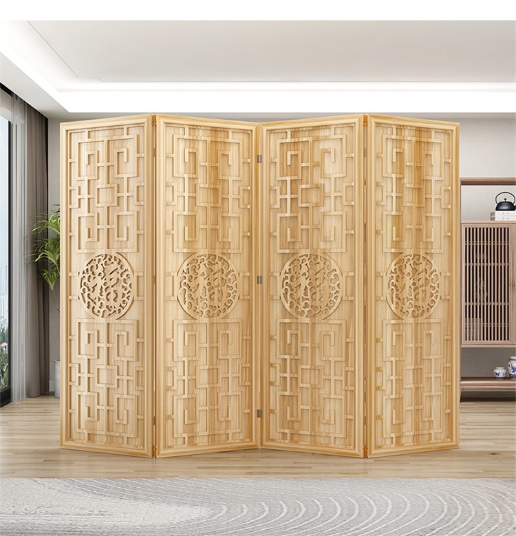 새로운 중국 스타일의 나무 화면 파티션 거실 사무실 복도 접이식 화면 현대 간단한 그릴 푸 캐릭터 장식 시트 화면스토어 가기