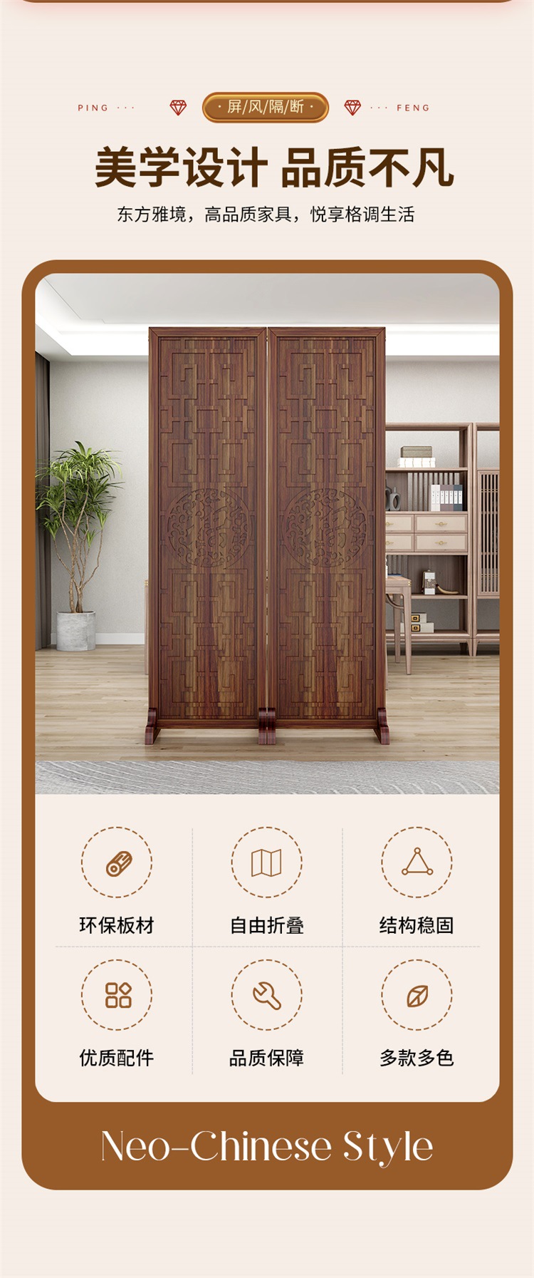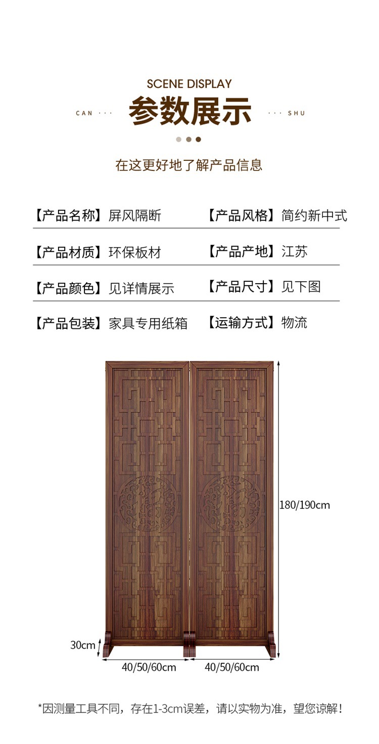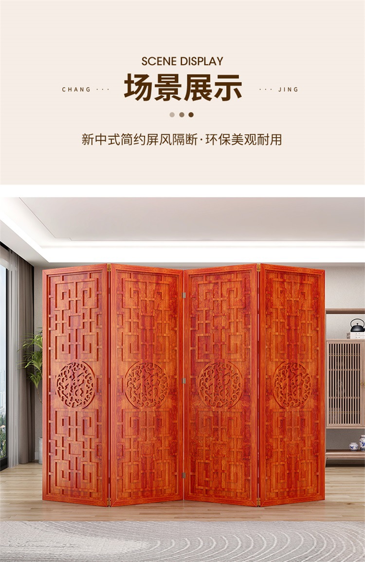새로운 중국 스타일의 나무 화면 파티션 거실 사무실 복도 접이식 화면 현대 간단한 그릴 푸 캐릭터 장식 시트 화면스토어 가기
