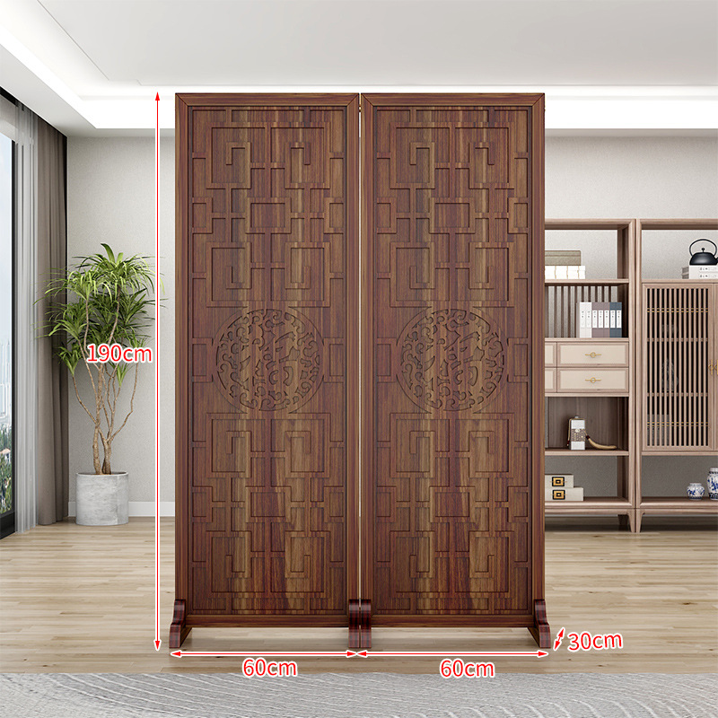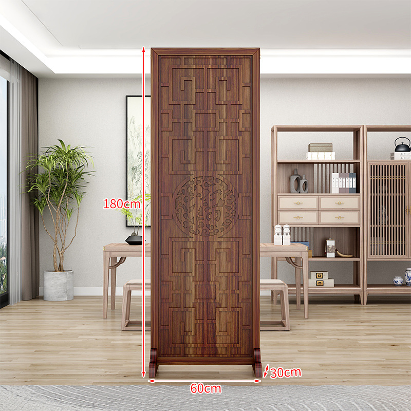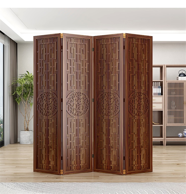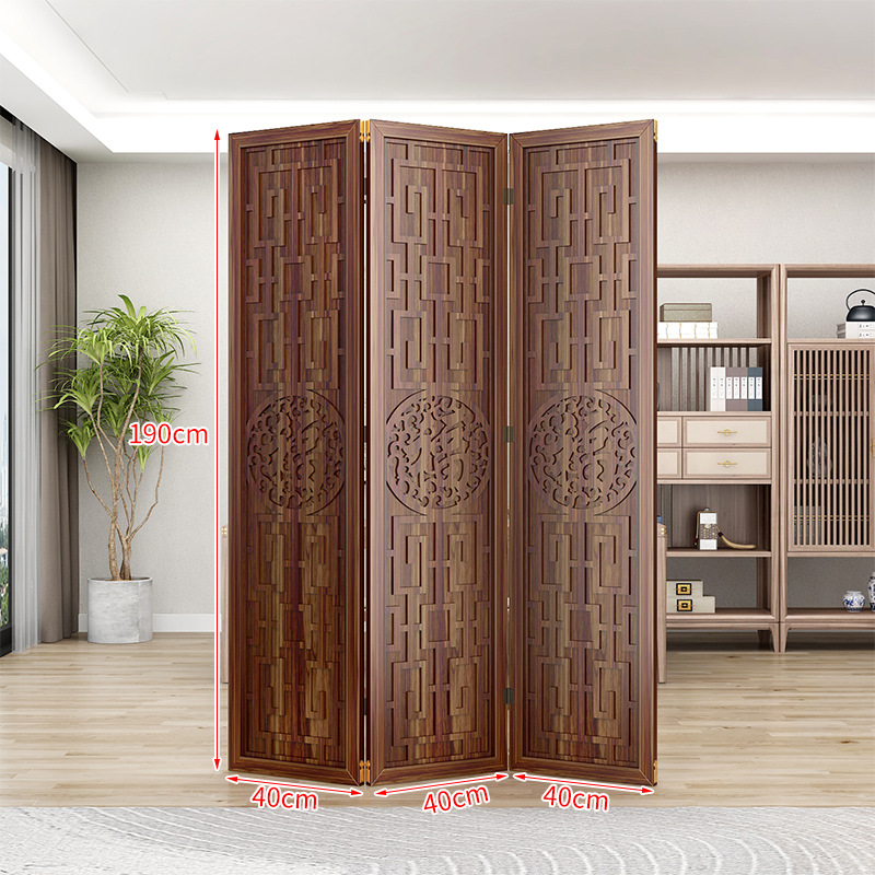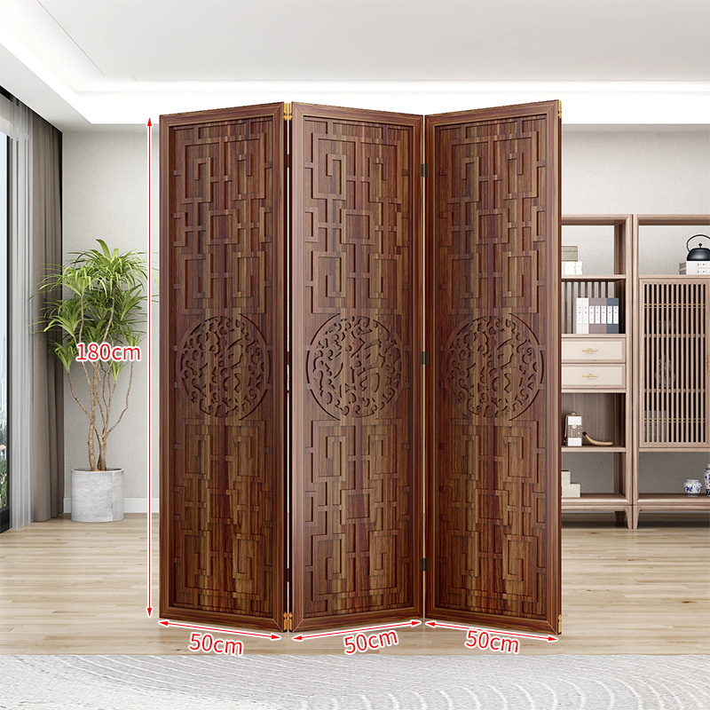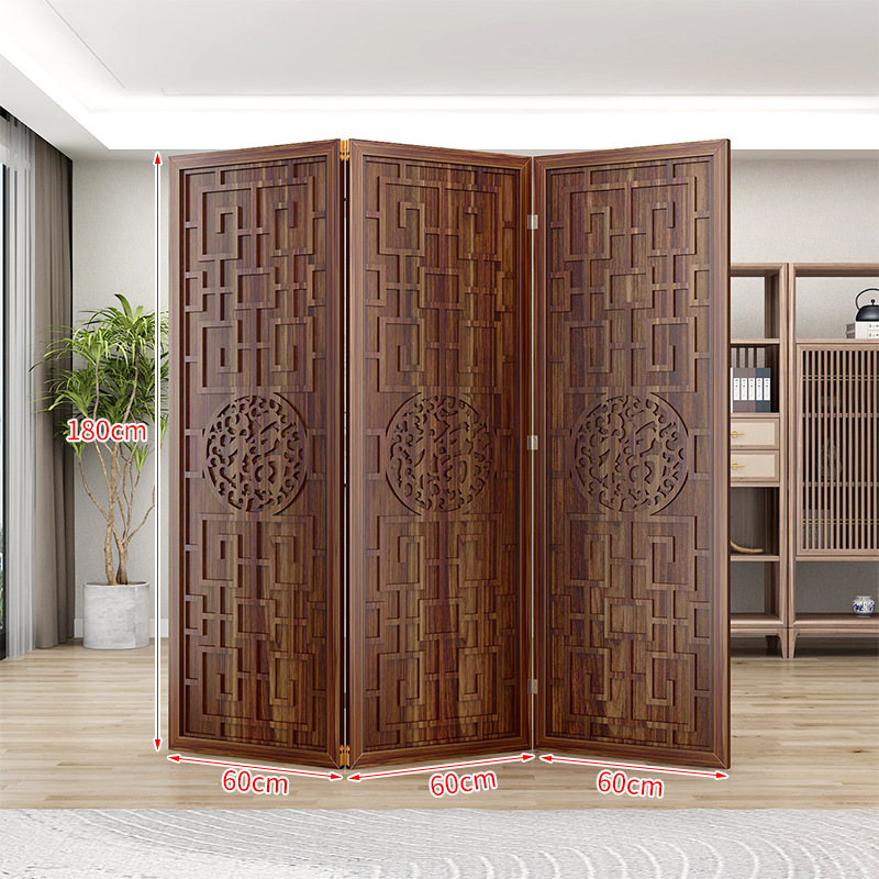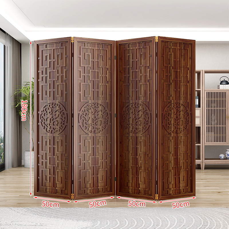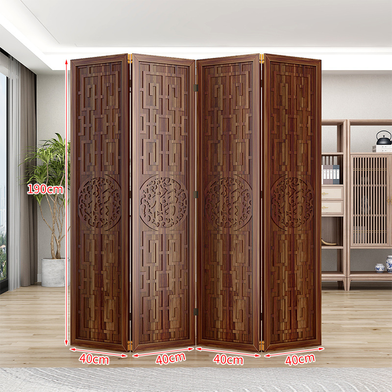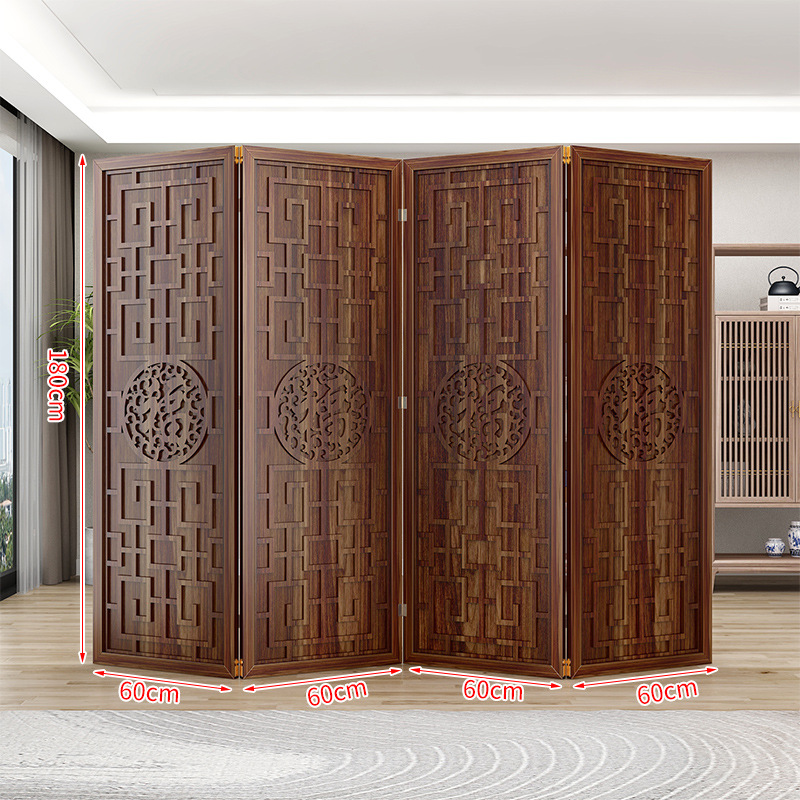 새로운 중국 스타일의 나무 화면 파티션 거실 사무실 복도 접이식 화면 현대 간단한 그릴 푸 캐릭터 장식 시트 화면