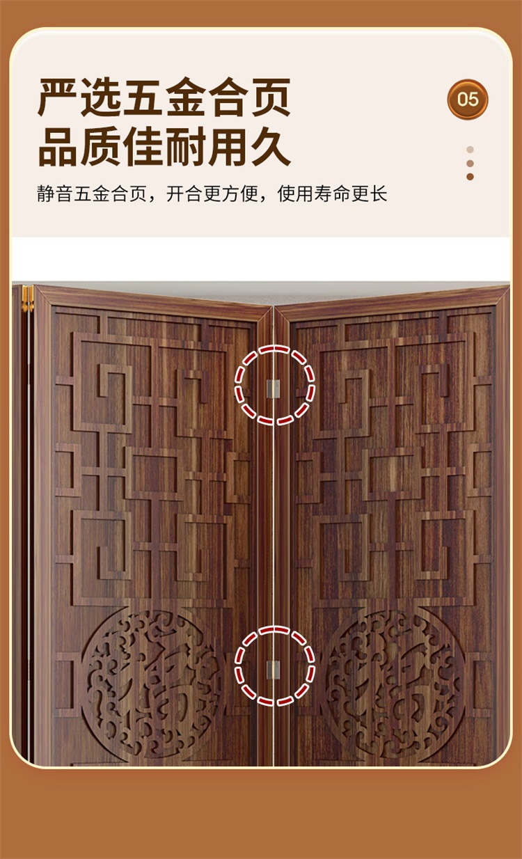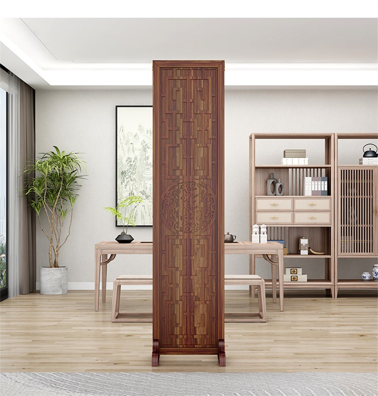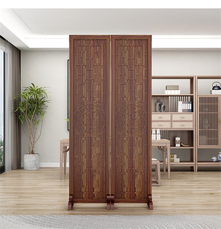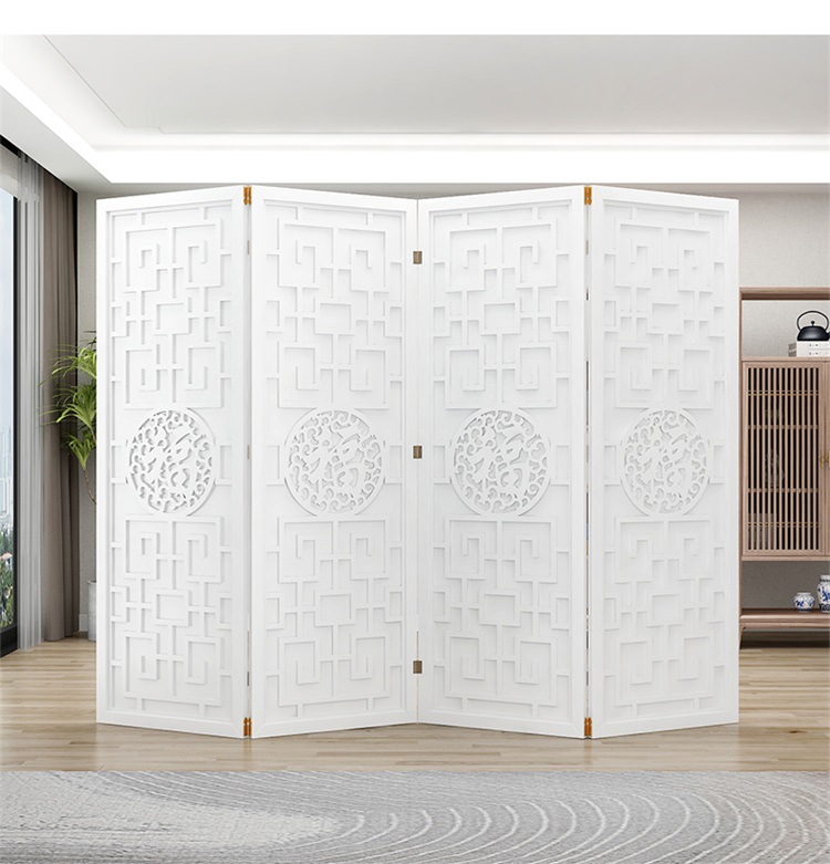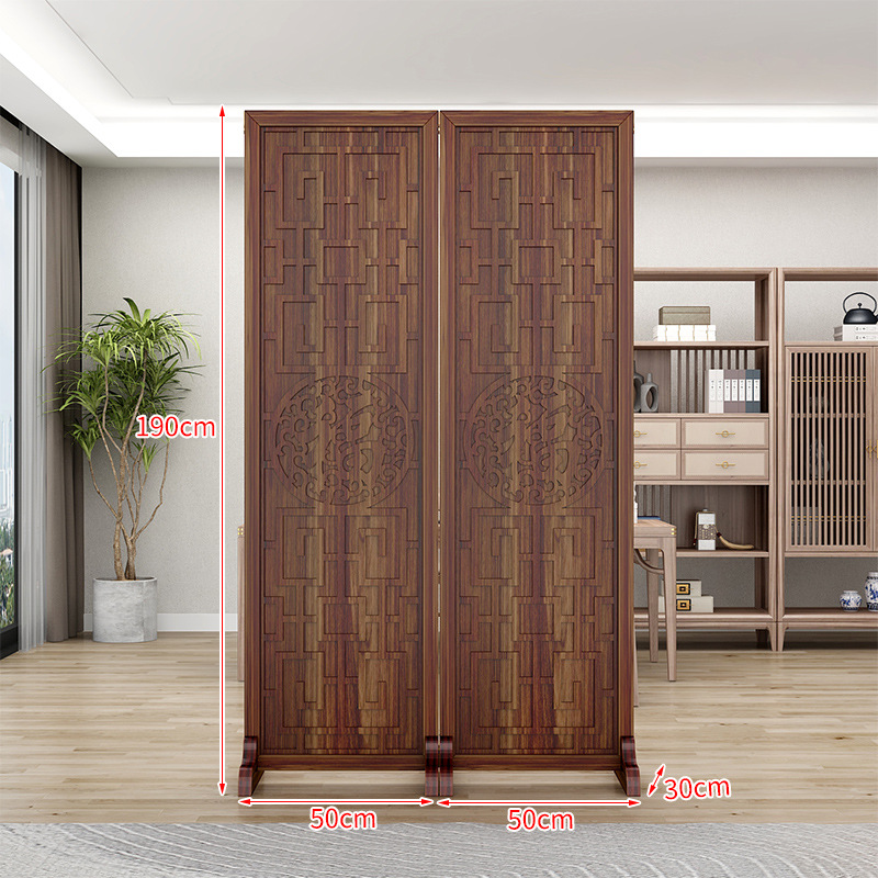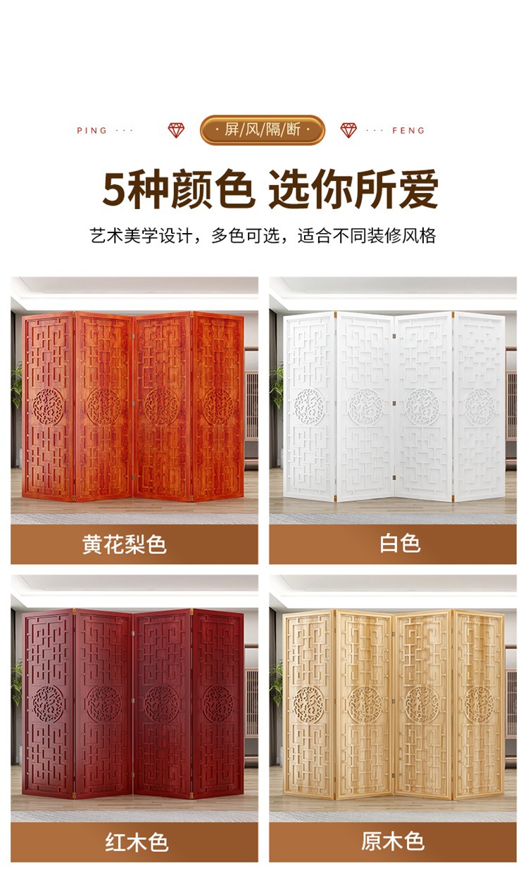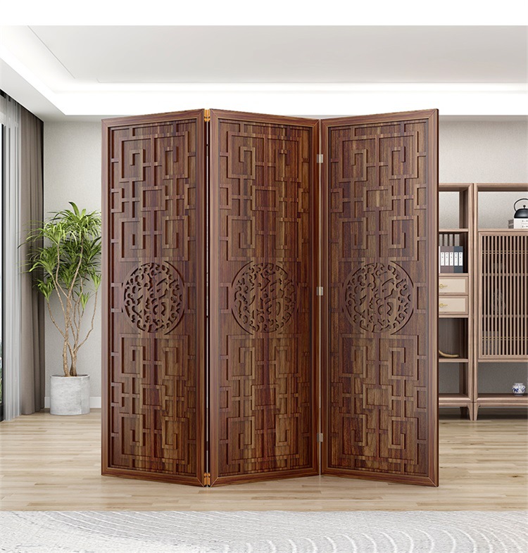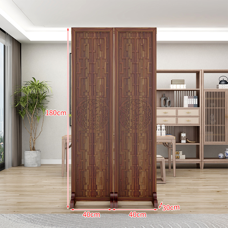 새로운 중국 스타일의 나무 화면 파티션 거실 사무실 복도 접이식 화면 현대 간단한 그릴 푸 캐릭터 장식 시트 화면
