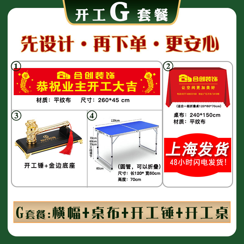• G 패키지: 망치 및 베이스 + 식탁보 + 배너 + 경량 테이블