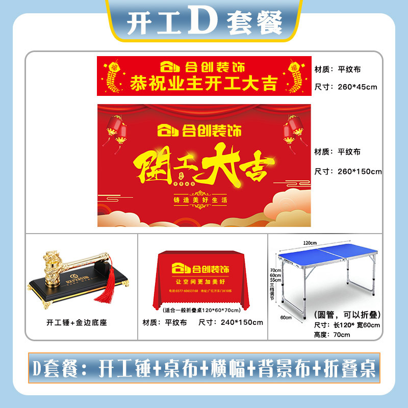 • 패키지 D: 망치와 베이스 + 식탁보 + 배너 + 배경 천(일반 버전) + 테이블