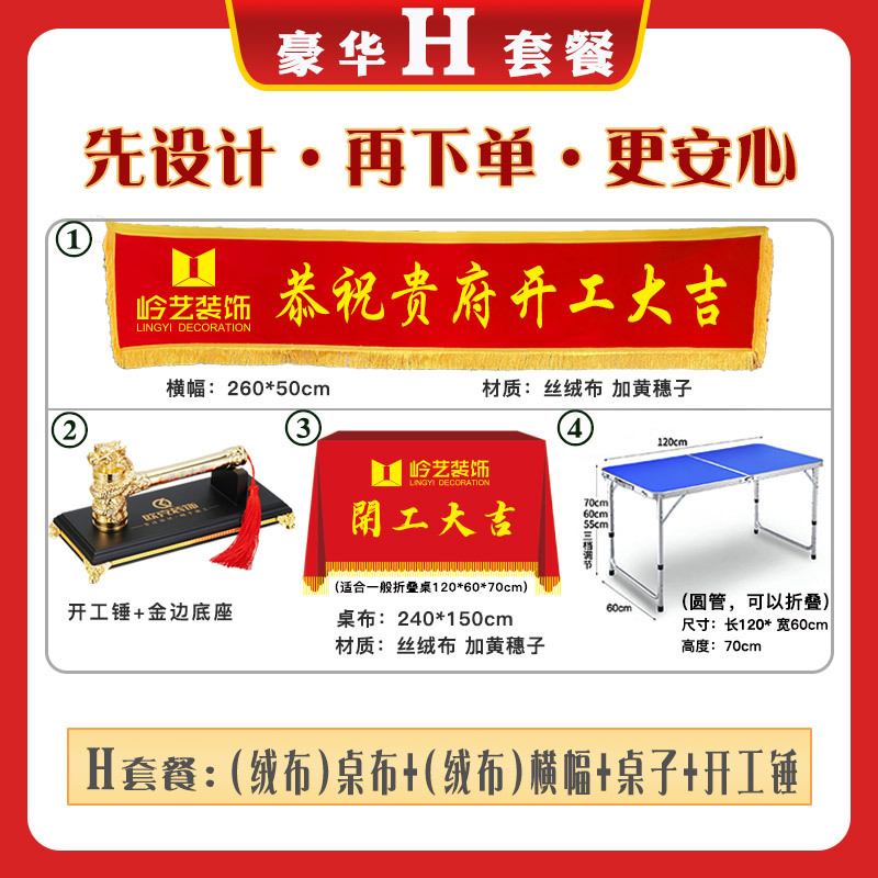 • 디럭스 H 패키지: 망치와 베이스 + 벨벳 식탁보 + 벨벳 배너 + 경량 테이블