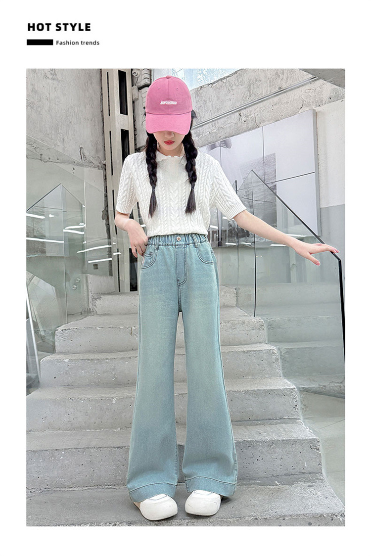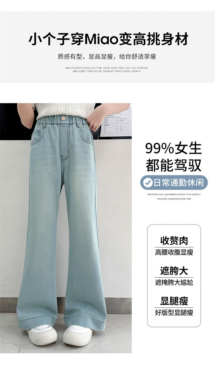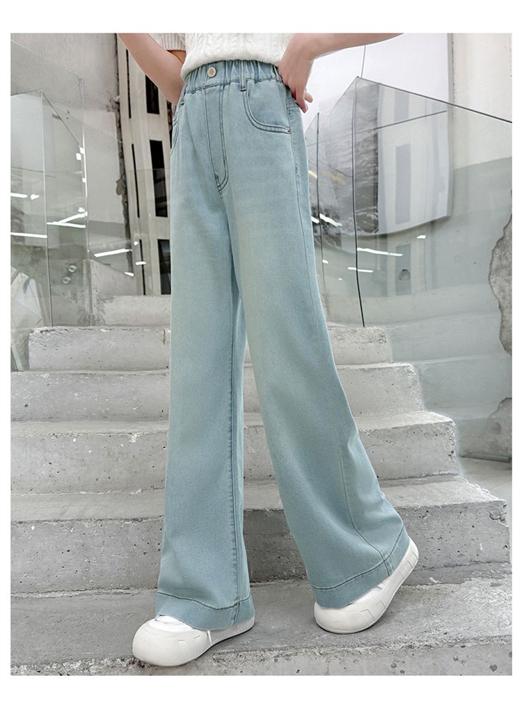 여자 청바지 여름 2025 새로운 스타일 큰 어린이 좁은 넓은 다리 여름 착용 중학교 소녀 스트레이트 바지 얇은스토어 가기