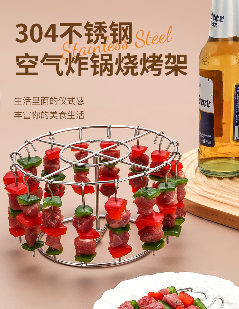 304 스테인리스 원형 바베큐 그릴 탈착식 휴대용 그릴 꼬치구이 스탠드형 꼬치구이 에어프라이어 액세서리