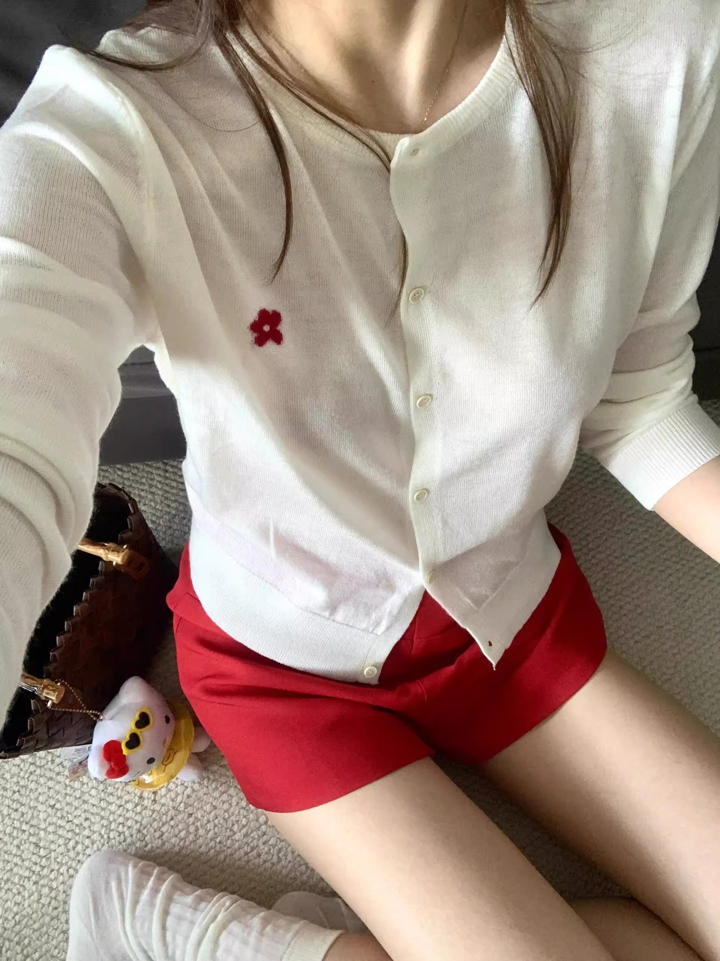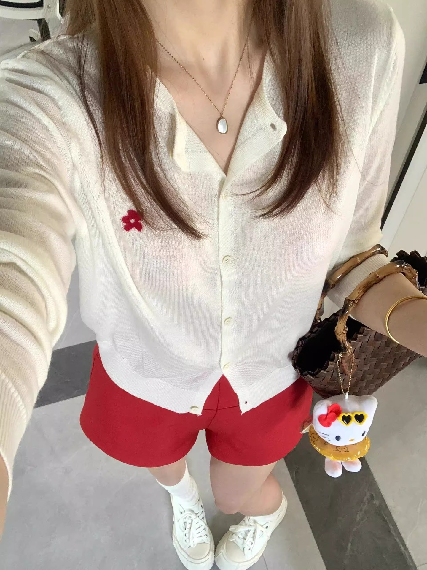 뜨거운 소녀 붉은 높은 허리 넓은 다리 A 모양 반바지 여성 여름 뜨거운 바지 작은 우아한 느슨한 슬리밍 스트레이트 바지