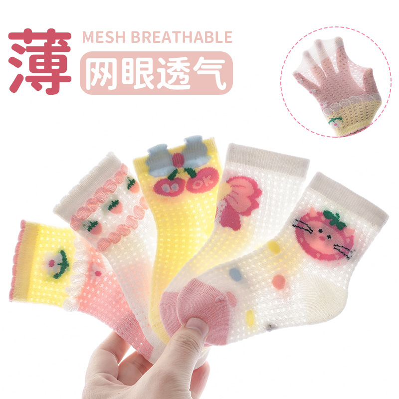 아기 양말 여름 얇은 중공 메쉬 만화 뼈없는 튜브 양말 아기 어린이 양말 여름 얇은