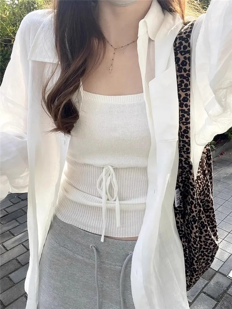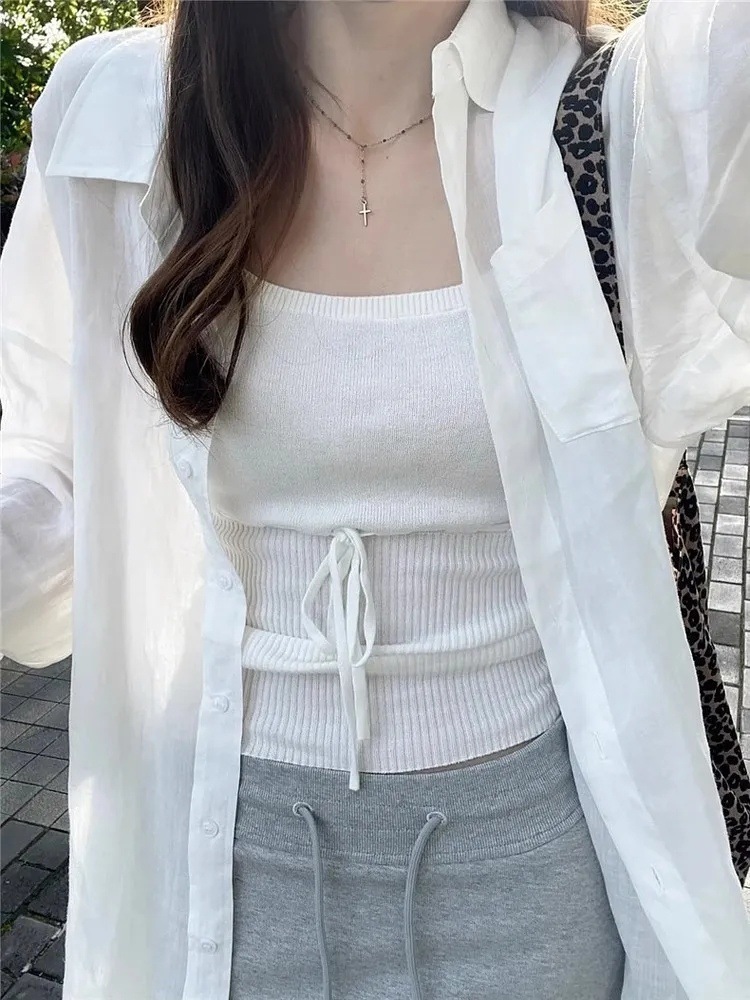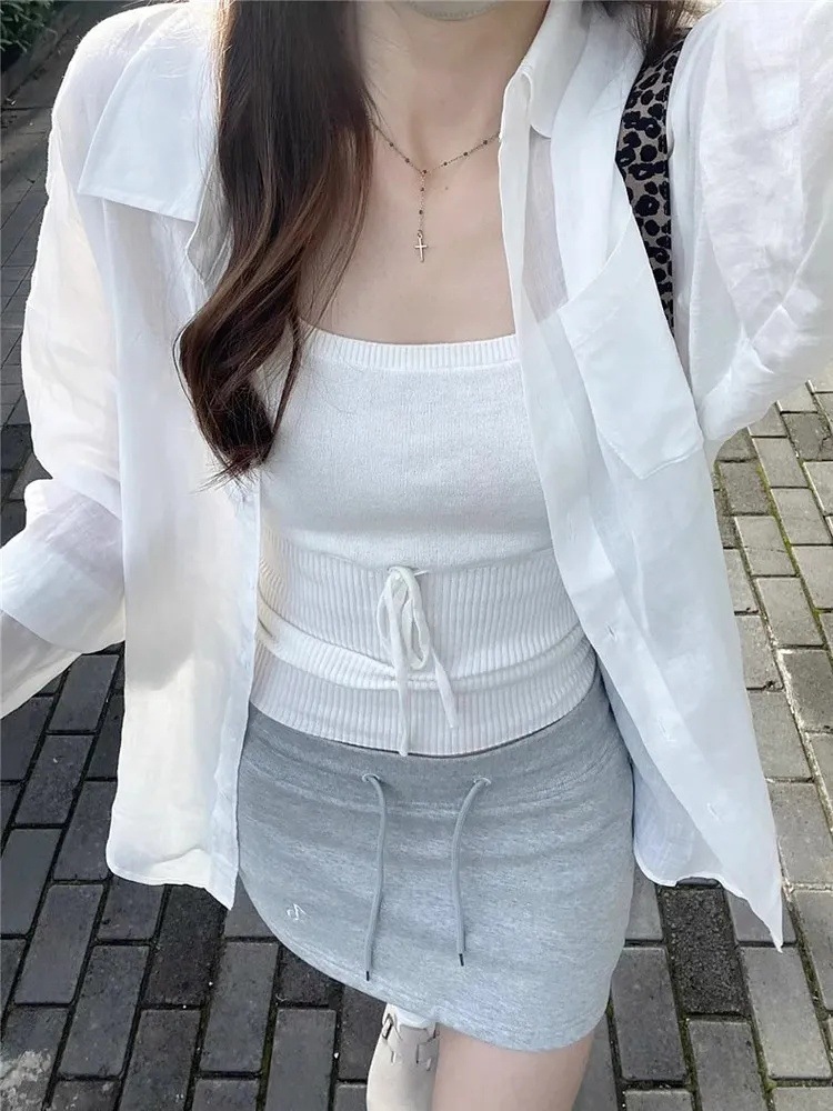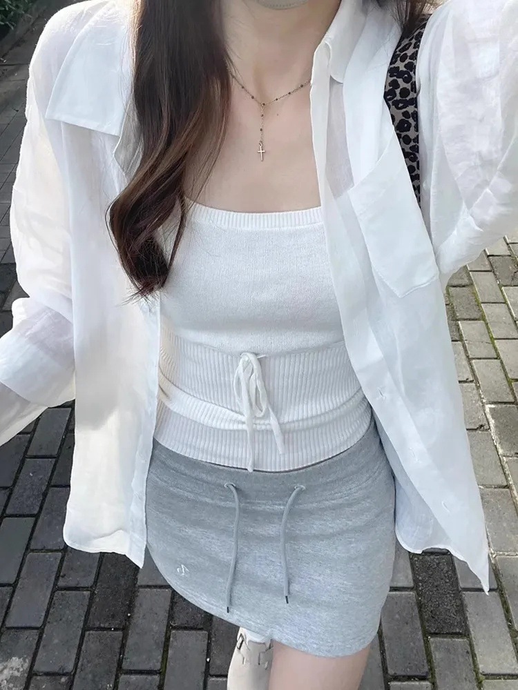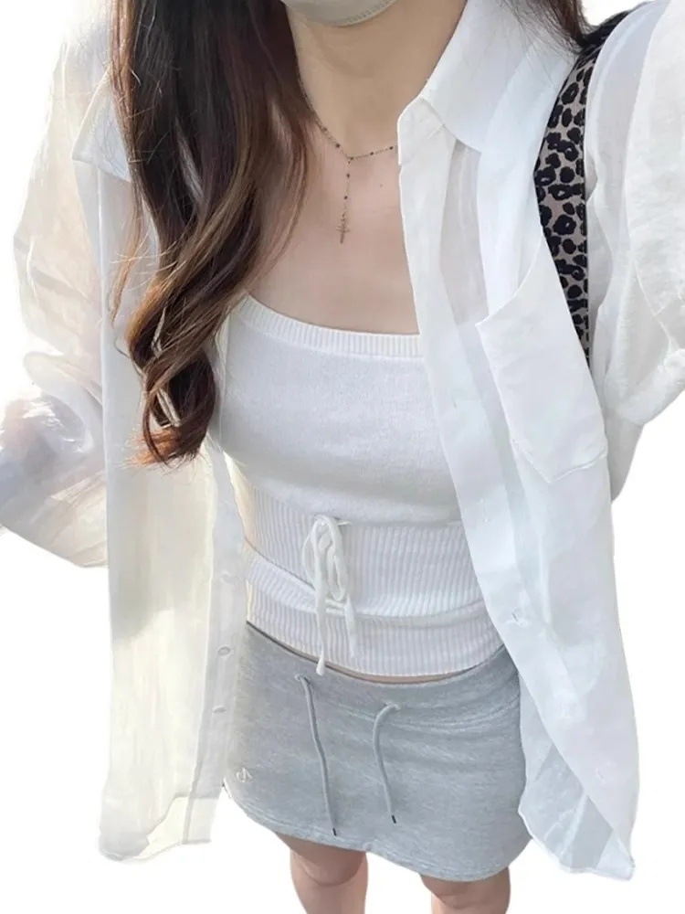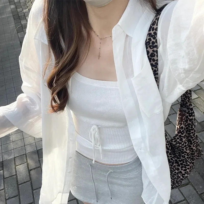 흰색 선 스크린 셔츠 여성 코트 봄과 여름 2024 새로운 셔츠 틈새 느슨한 슬리밍 우아한 얇은 탑