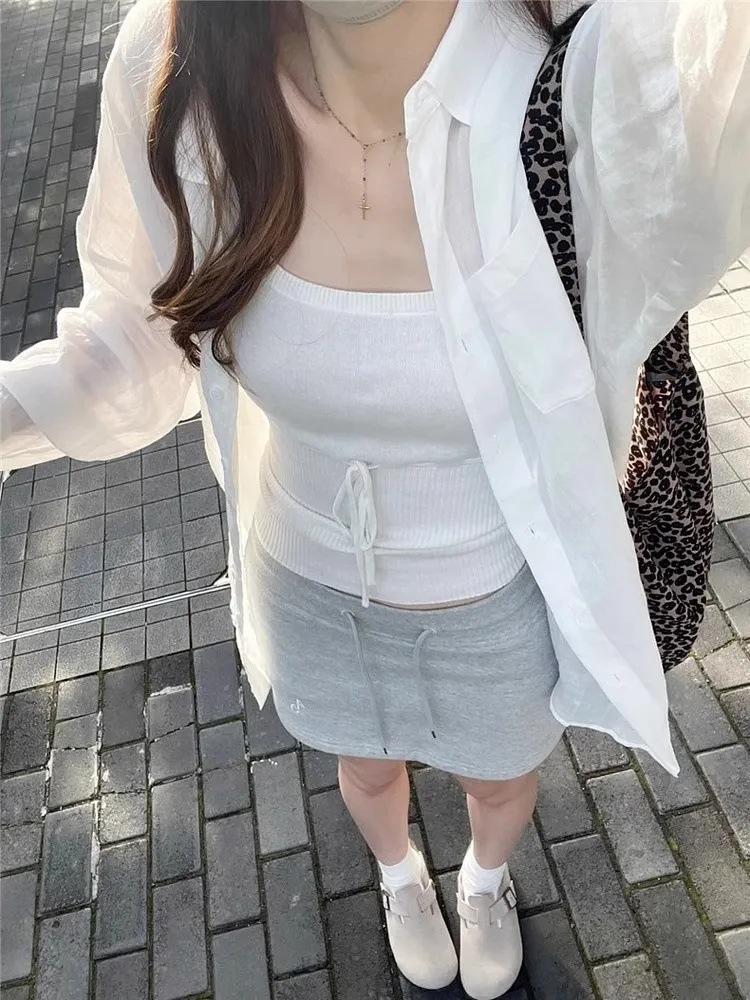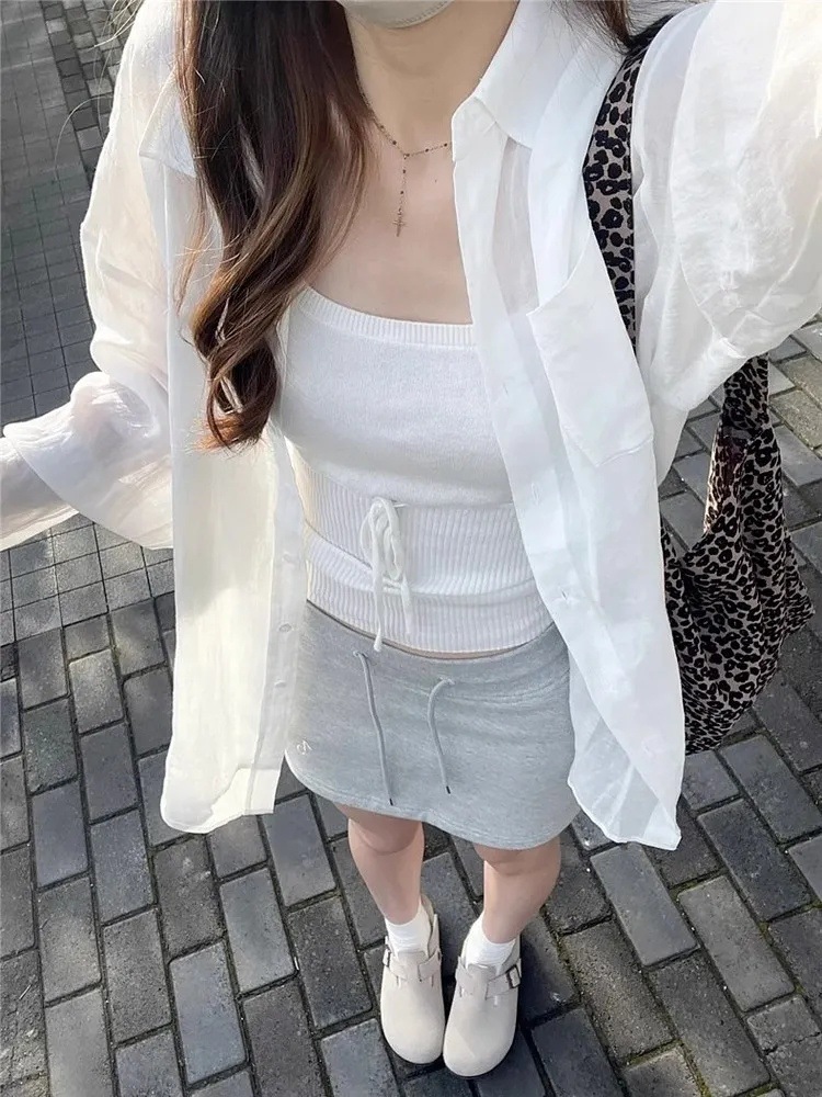 흰색 선 스크린 셔츠 여성 코트 봄과 여름 2024 새로운 셔츠 틈새 느슨한 슬리밍 우아한 얇은 탑스토어 가기