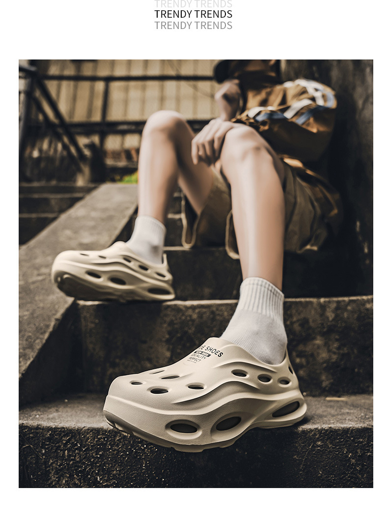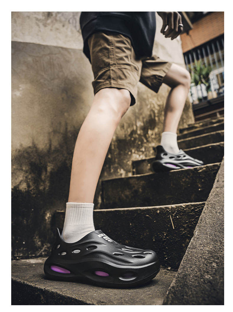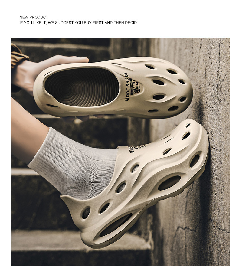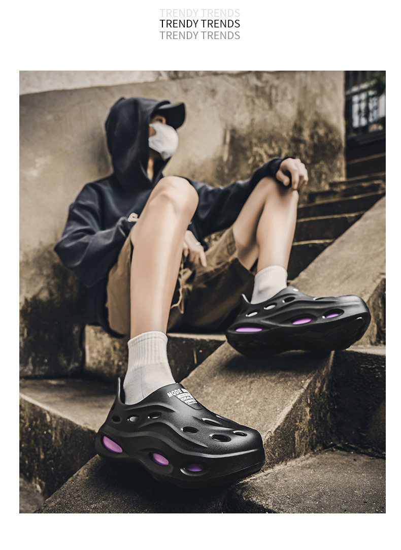 남성용 새로운 스타일의 편안하고 트렌디하며 패셔너블한 데일리 캐주얼 라운드 투 컬러 매칭 나막신 통기성 발가락 남성용 나막신스토어 가기