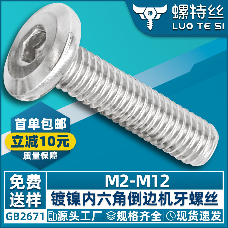 니켈 도금 대형 플랫 헤드 육각 소켓 나사, 베벨 육각 소켓 나사, 가구 볼트 M6 | M8번