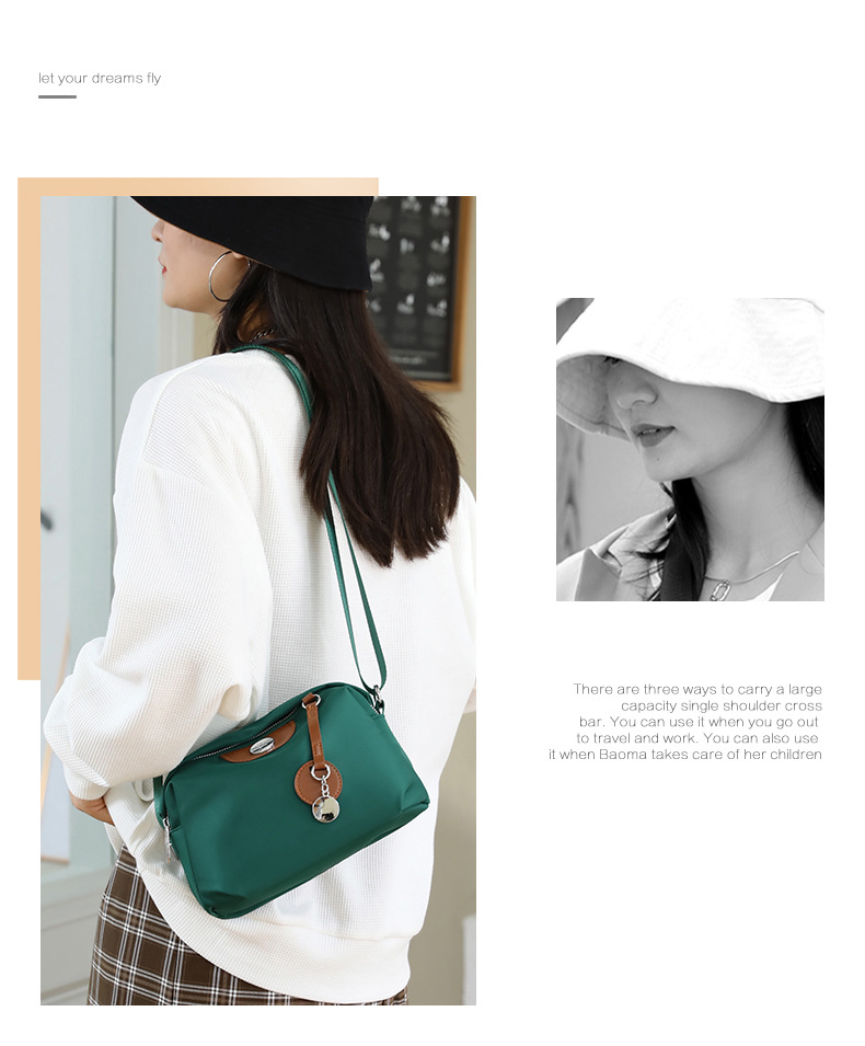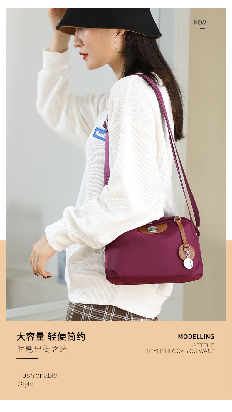새로운 여성 나일론 어깨 가방 국경 간단한 색상 대비 대용량 크로스 바디 가방 캐주얼 경량 중년 어머니 가방