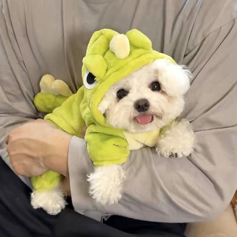 개 옷 2025 봄 새로운 귀여운 애완 동물 네 다리 옷 테디 Bixiong 견인 공룡 변형 옷