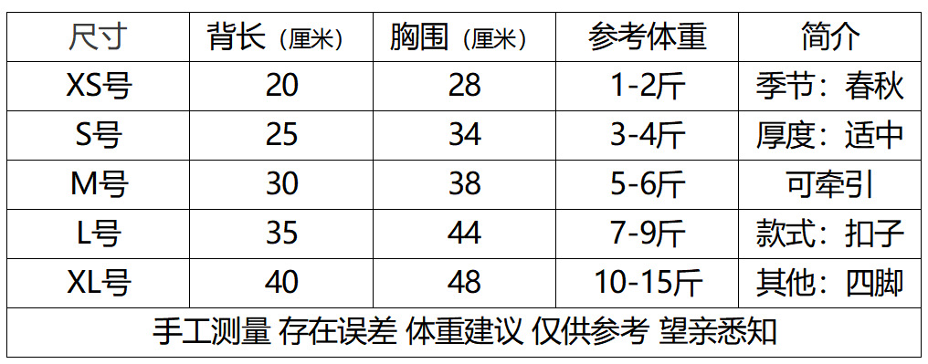 • XS 등길이 20cm (권장 0.5-1.0kg)