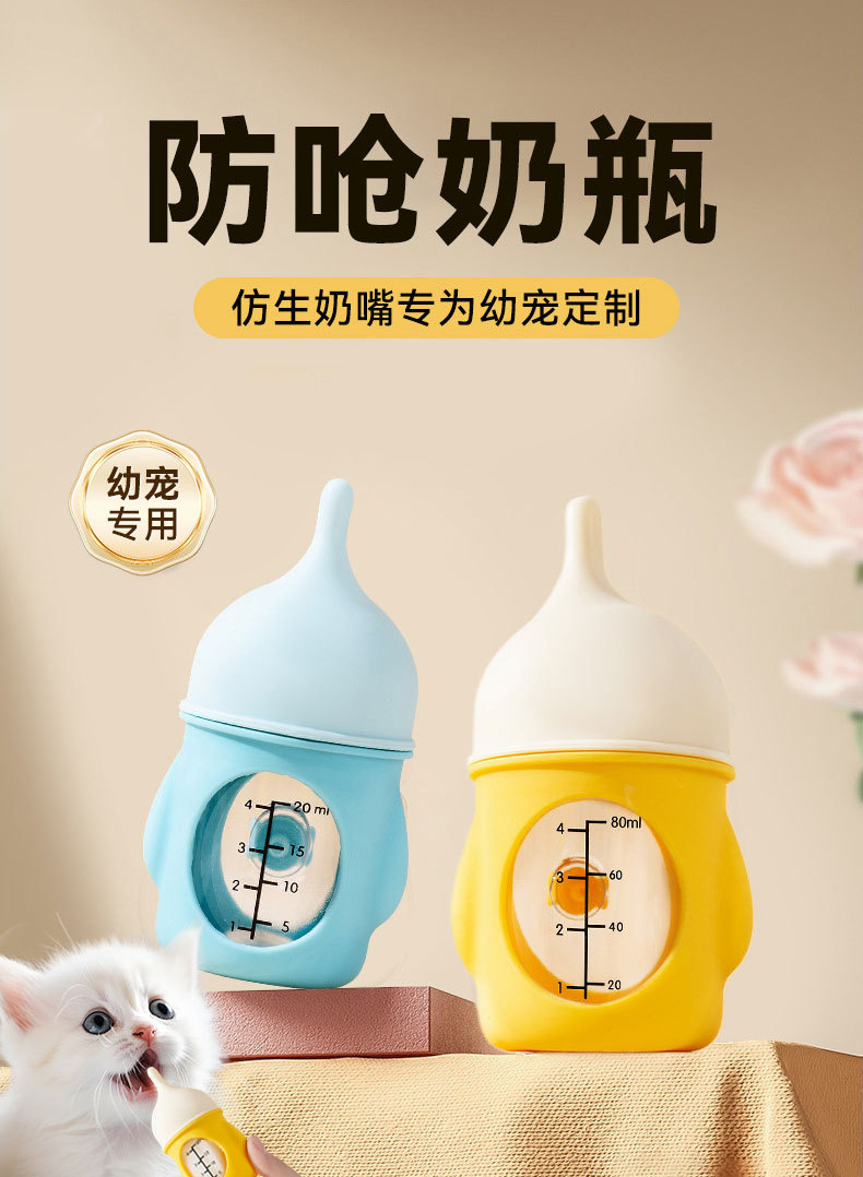 애완용 고양이 젖병, 작은 고양이를 위한 특수 실리콘 젖꼭지, 모유를 모방한 신생아 고양이 수유, 질식 방지 젖병