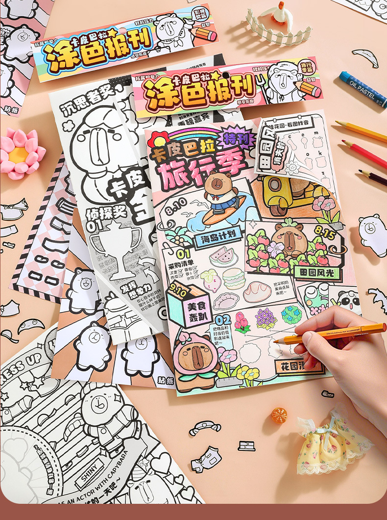 코어 Mo Kappibala 컬러 신문 스티커 창조적 인 장면 변경 스티커 어린이 색칠 DIY 수제스토어 가기