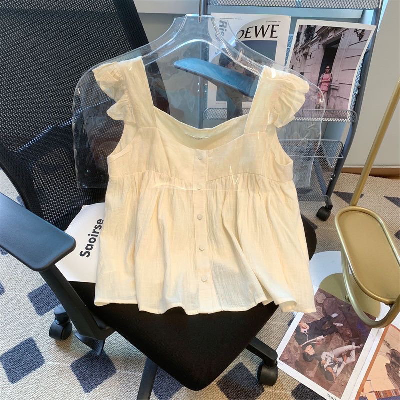小清新飞飞袖方领衬衫上衣女夏季甜美气质雪纺背心无袖洋气小衫潮