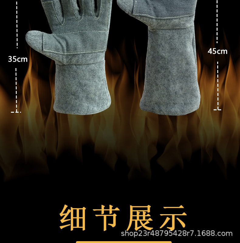 Laowei 고온 방지 장갑 1000도 500도 단열 내화성 산업용 내마모성 다섯 손가락 두꺼운 화상 방지스토어 가기