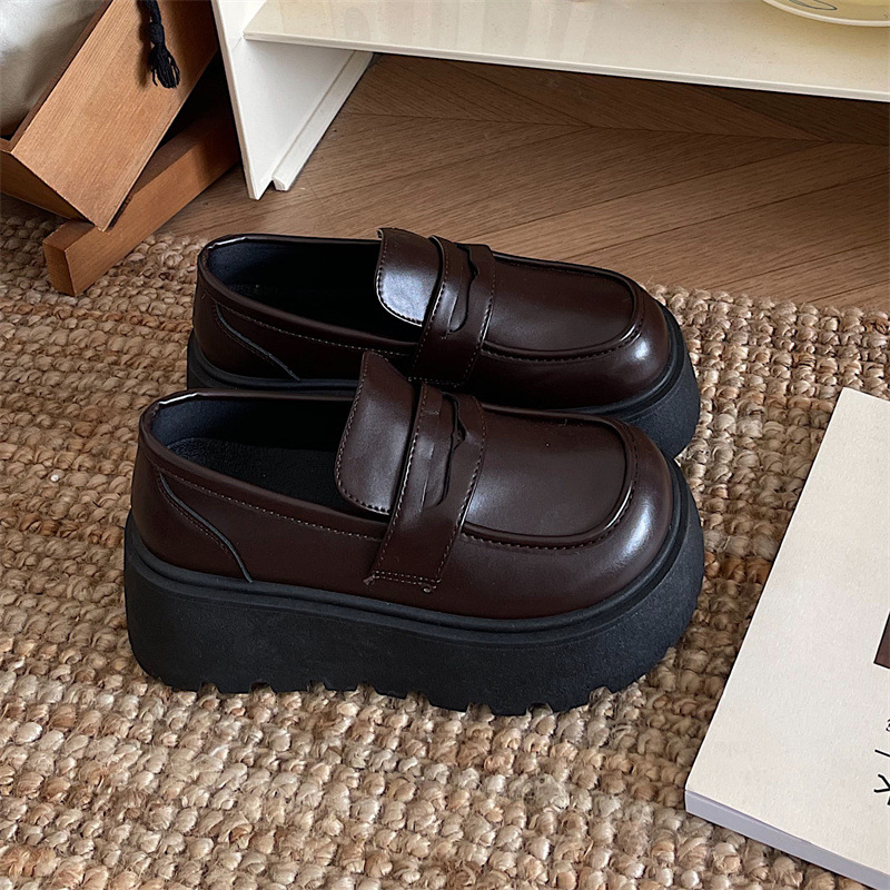 여성을 위한 패셔너블하고 우아한 두꺼운 밑창의 작은 가죽 신발 2025 새로운 봄, 가을 스타일 스커트와 매치하기 쉬운 슬립온 로퍼