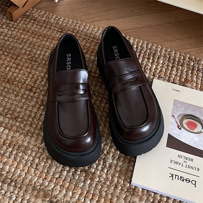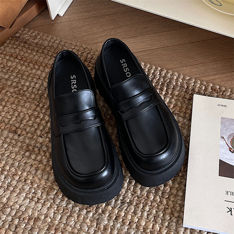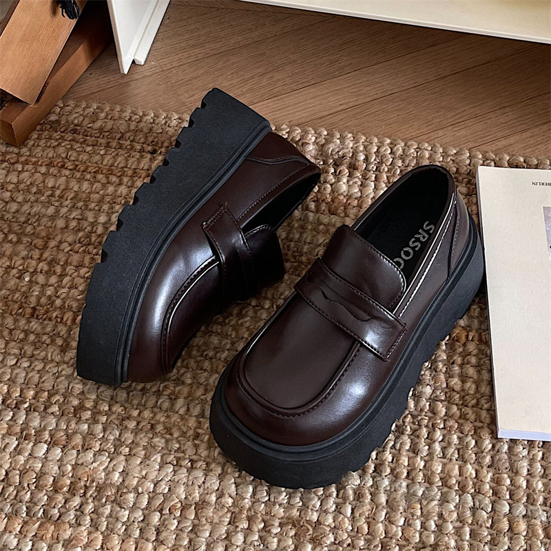 여성을 위한 패셔너블하고 우아한 두꺼운 밑창의 작은 가죽 신발 2025 새로운 봄, 가을 스타일 스커트와 매치하기 쉬운 슬립온 로퍼스토어 가기