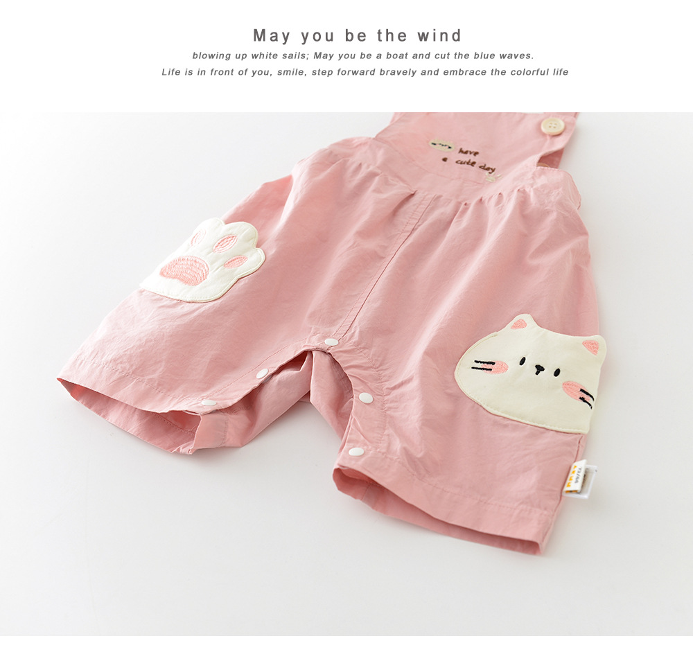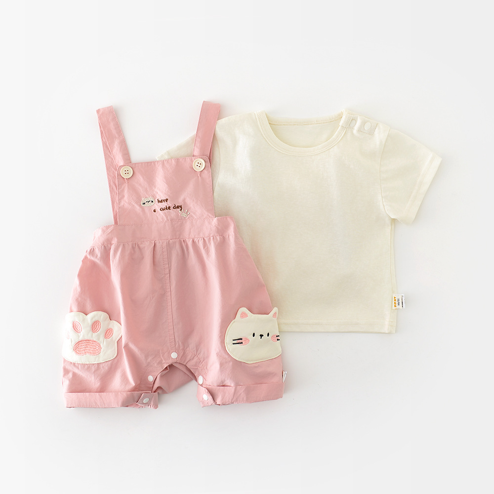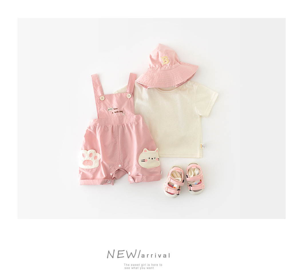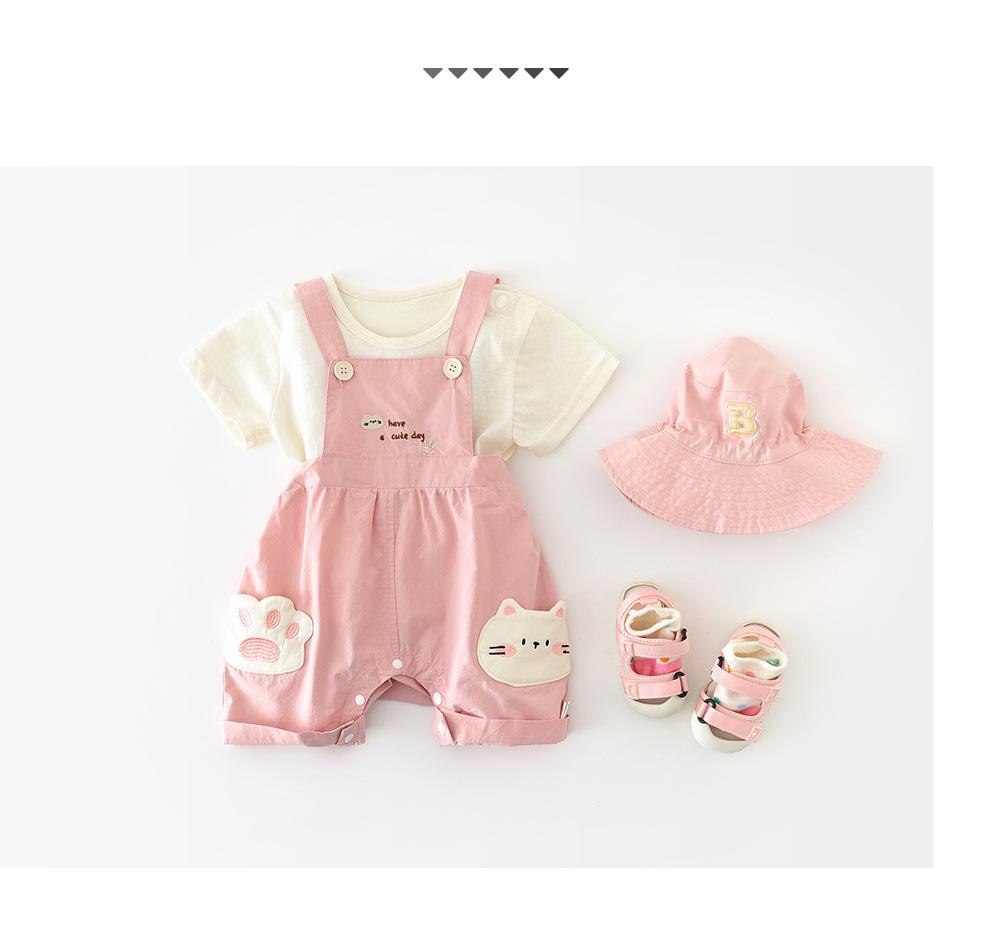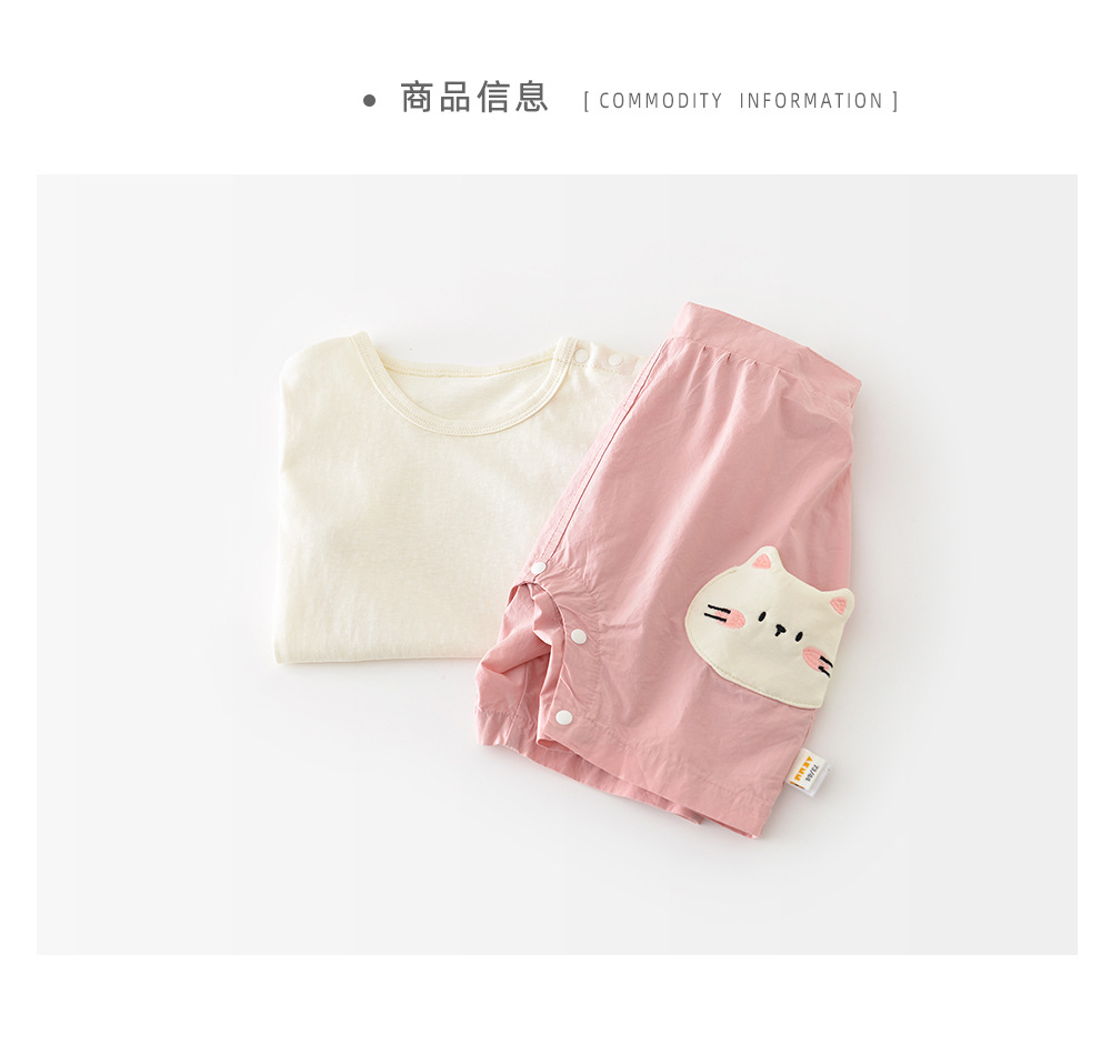 2025 년 여름 새로운 반팔 스트랩 귀여운 새끼 고양이 세트 유아 1-3 년 된 만화 투피스 52130스토어 가기