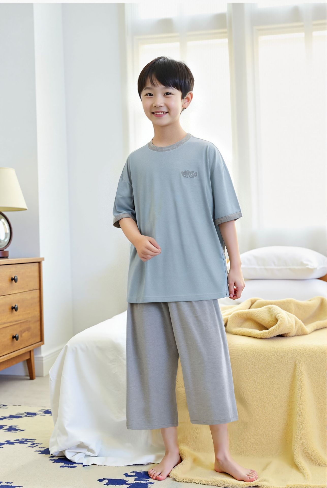 • 하늘색 옷과 밝은 회색 바지 세트