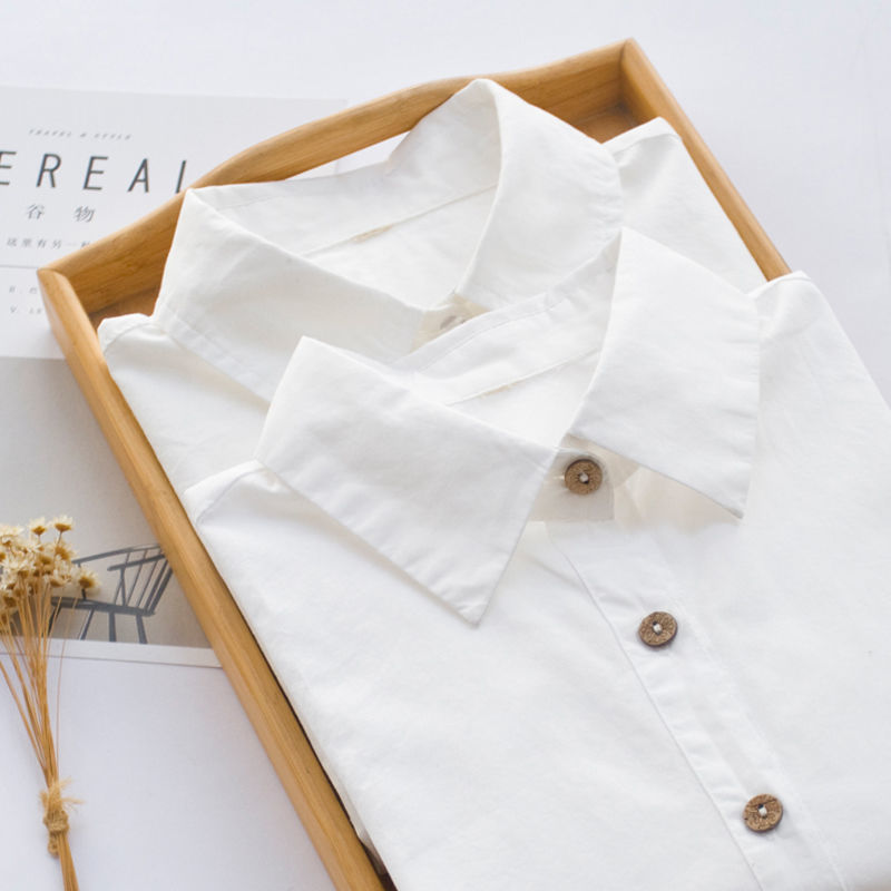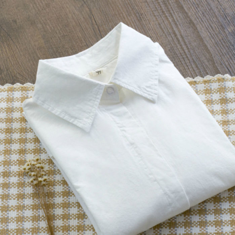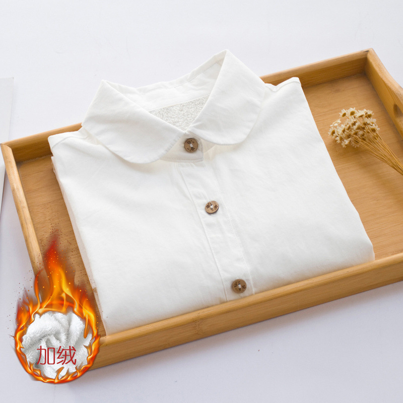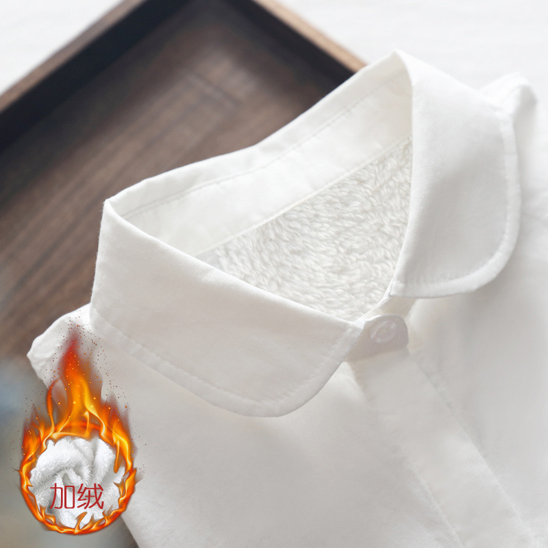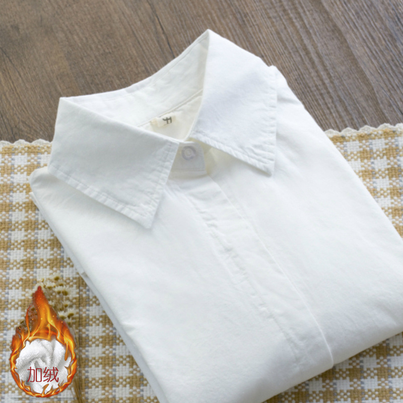 100% 코튼 봄 긴팔 흰색 셔츠 여성 겨울 벨벳 두꺼운 따뜻한 기본 셔츠 간단한 전문 탑스토어 가기