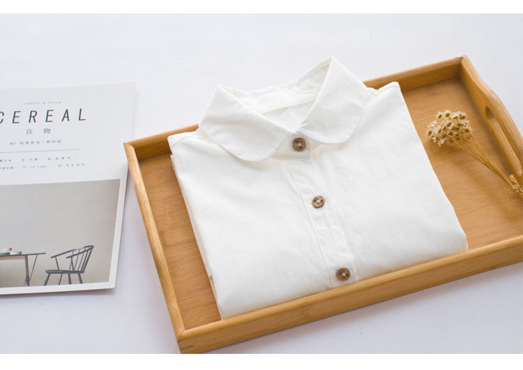 • 포인티드 칼라 나무 단추 순면