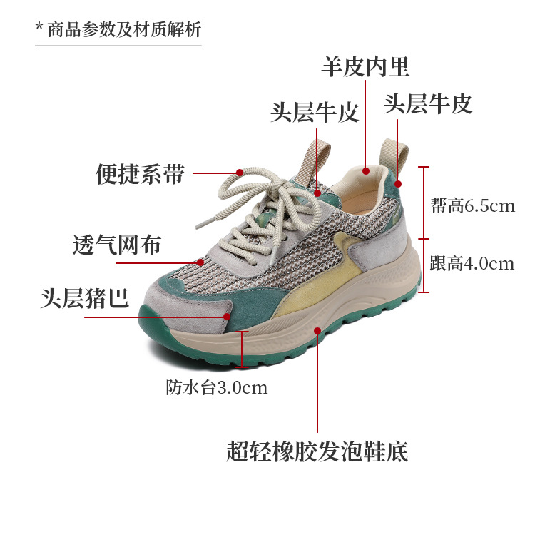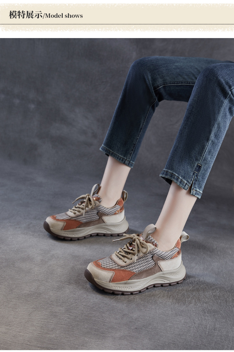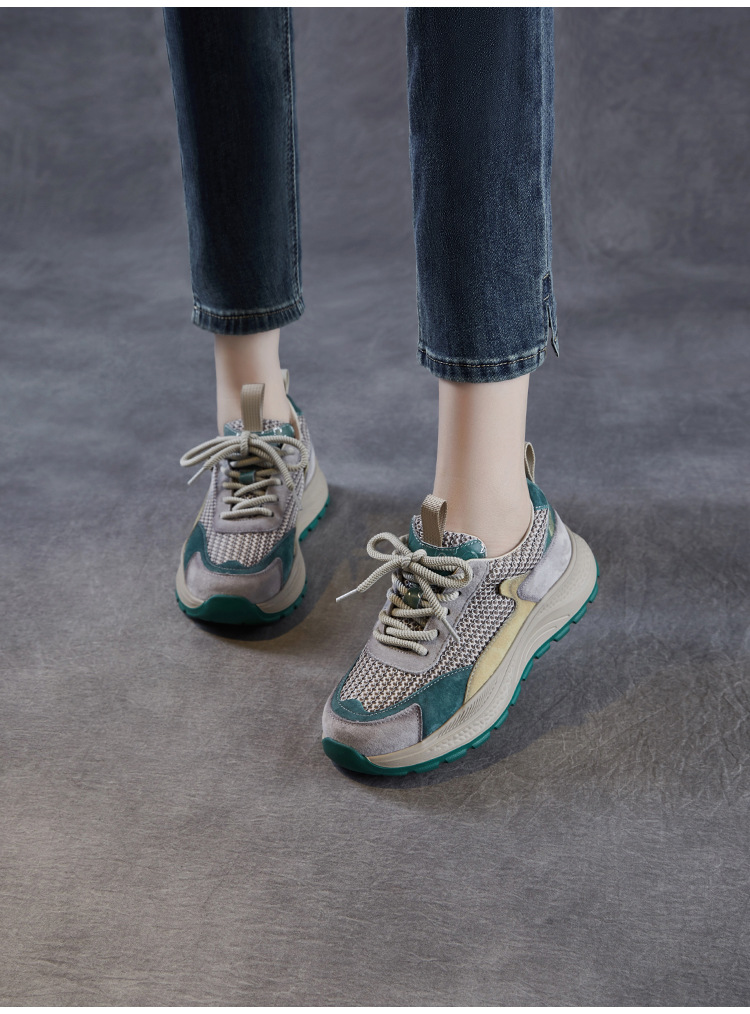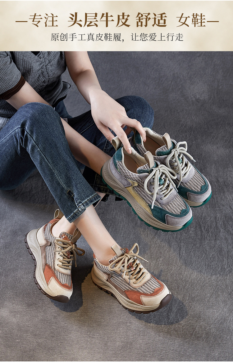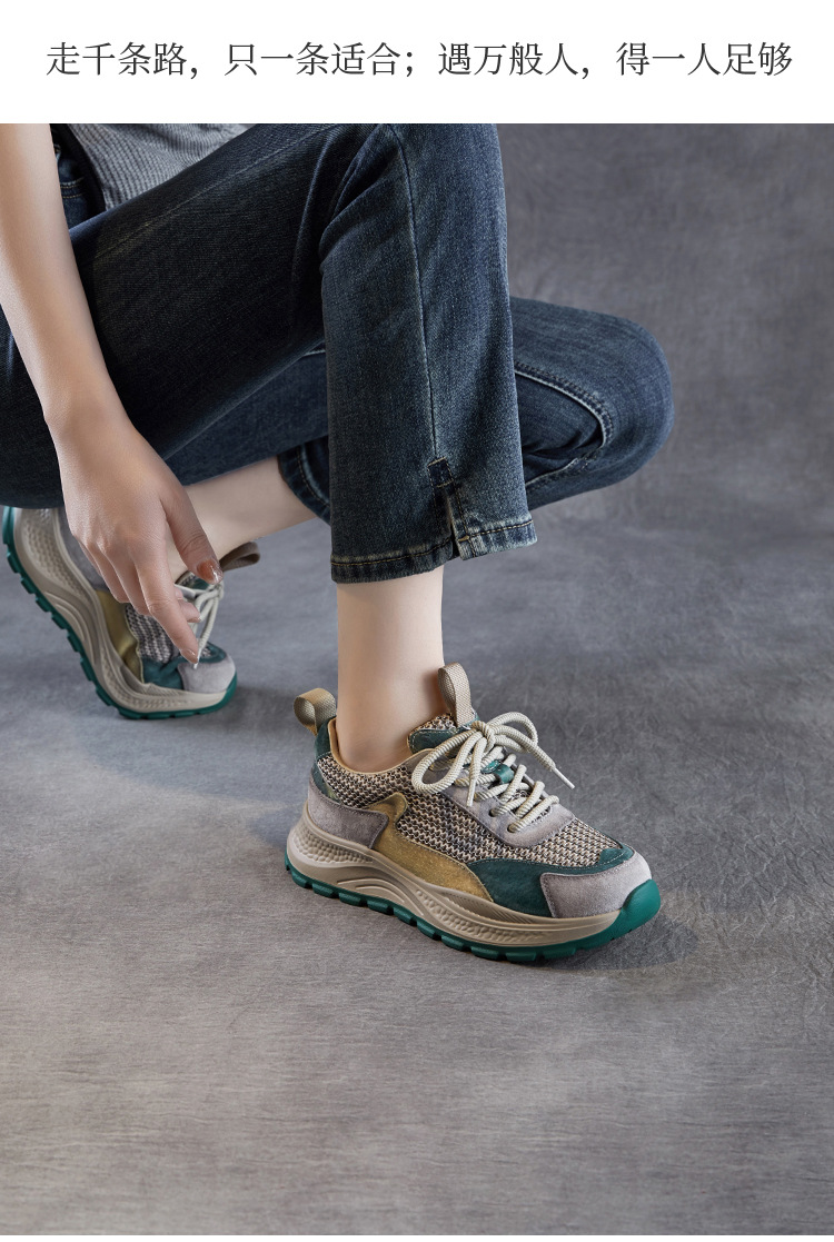 봄과 여름 2025 새로운 정품 가죽 둥근 발가락 포레스트 검프 신발 대조 컬러 싱글 레이어 신발 여성용 캐주얼 통기성 메쉬 경량 토레 신발스토어 가기