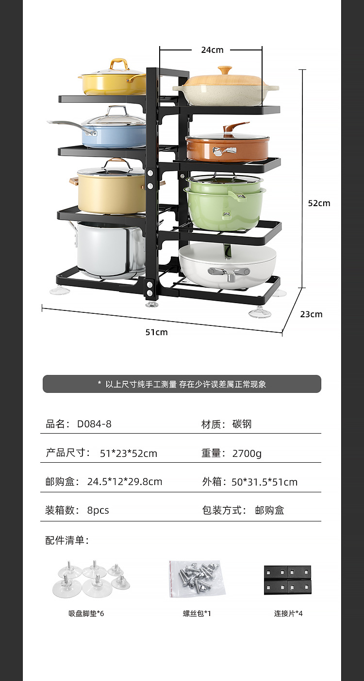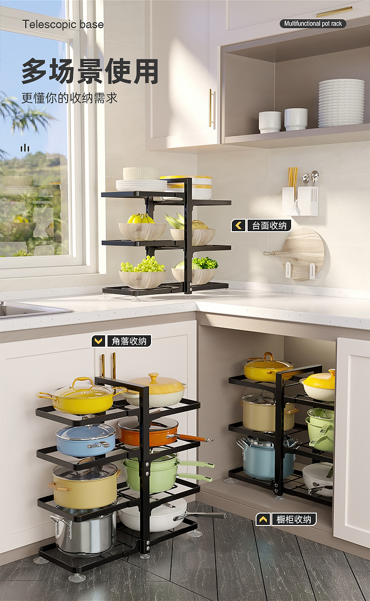주방용 맞춤형 다층 수납 선반, 가정용 코너 수납 선반, 싱크대 아래 조리기구, 조절 가능한 냄비 선반