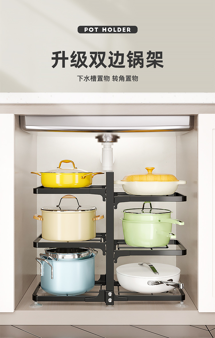 주방용 맞춤형 다층 수납 선반, 가정용 코너 수납 선반, 싱크대 아래 조리기구, 조절 가능한 냄비 선반스토어 가기