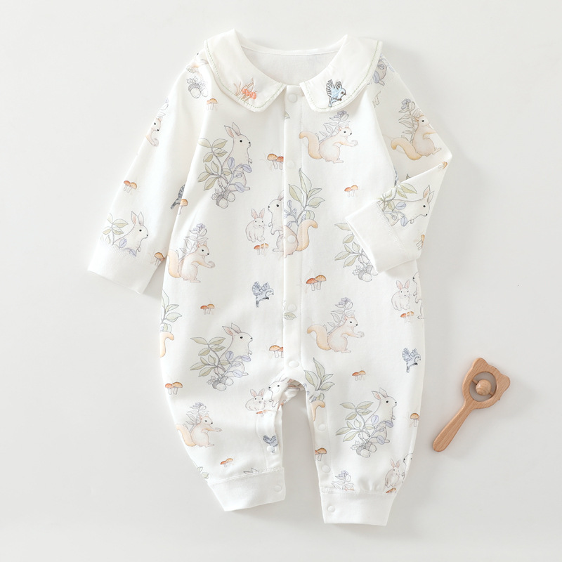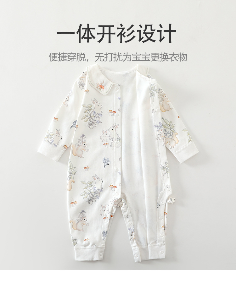 아기 옷 긴팔 봄 가을과 여름 아기 원피스 옷 순수한면 아기의 등산 옷