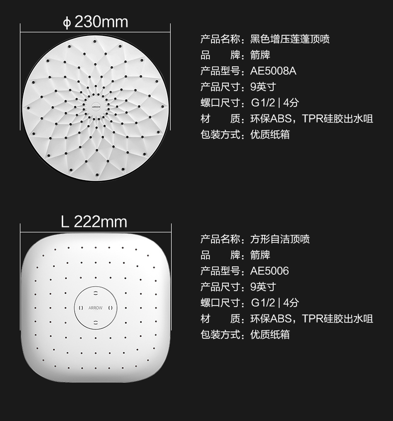 • ЙЙЙιιι 9inch 라운드 탑 스프레이 [얇은 스타일] ЙЙЙιιι