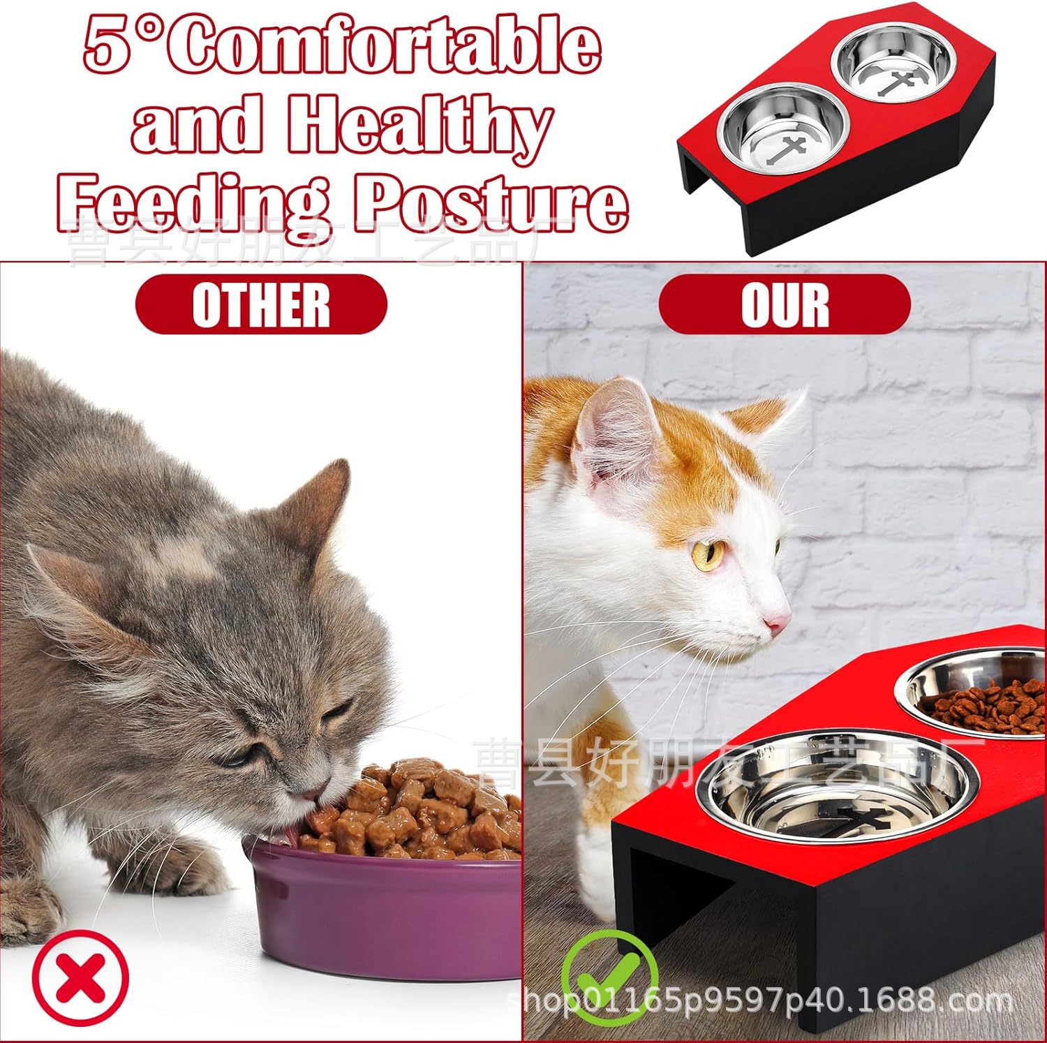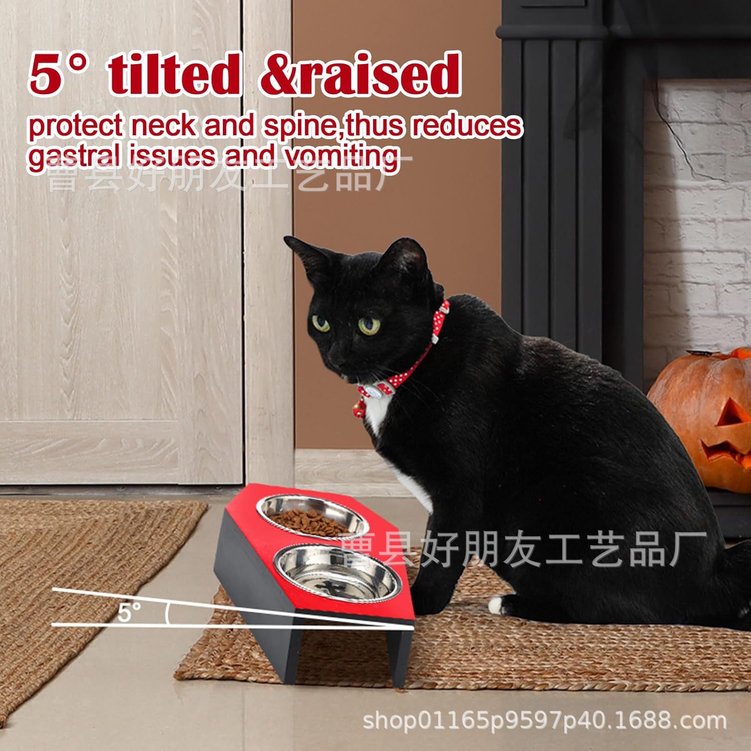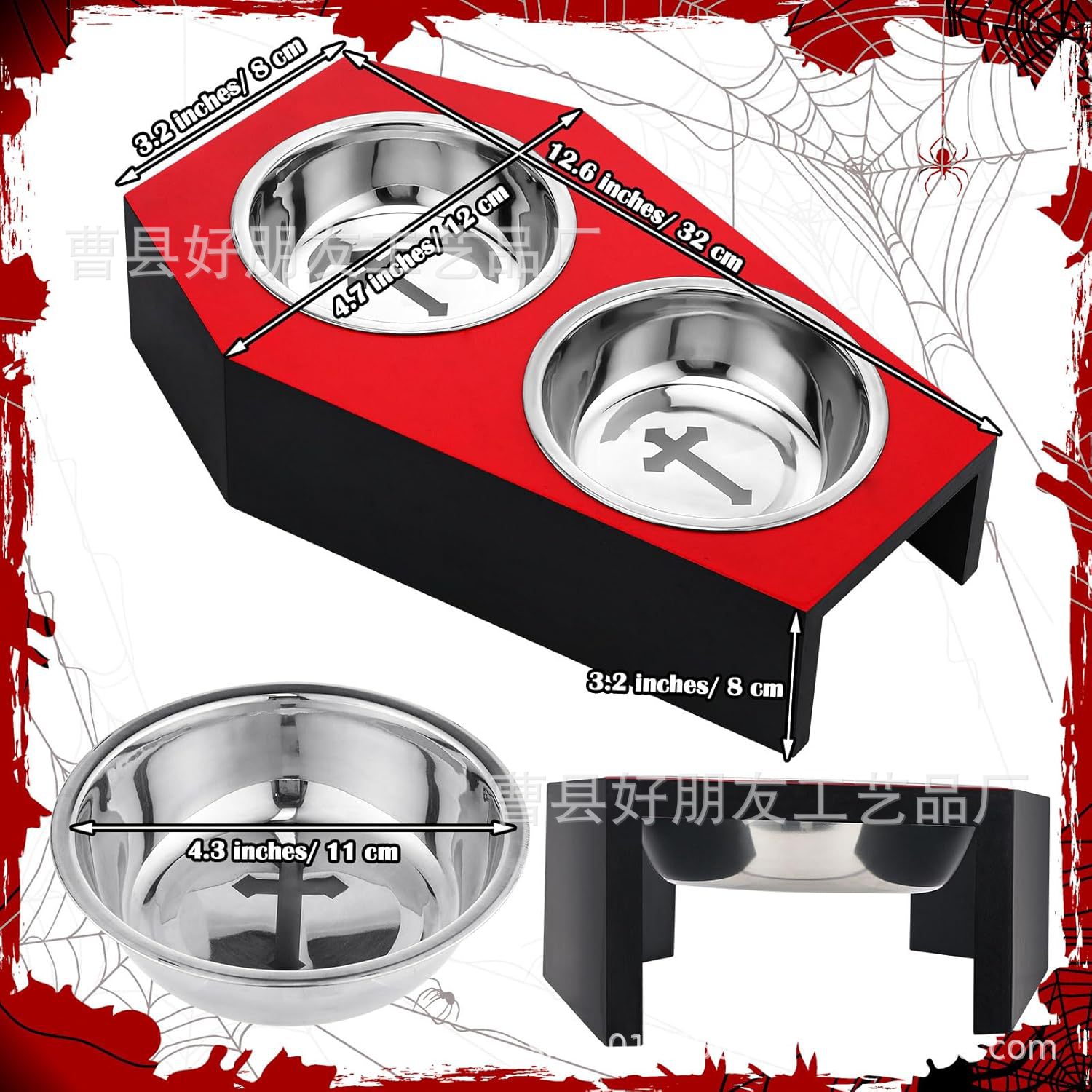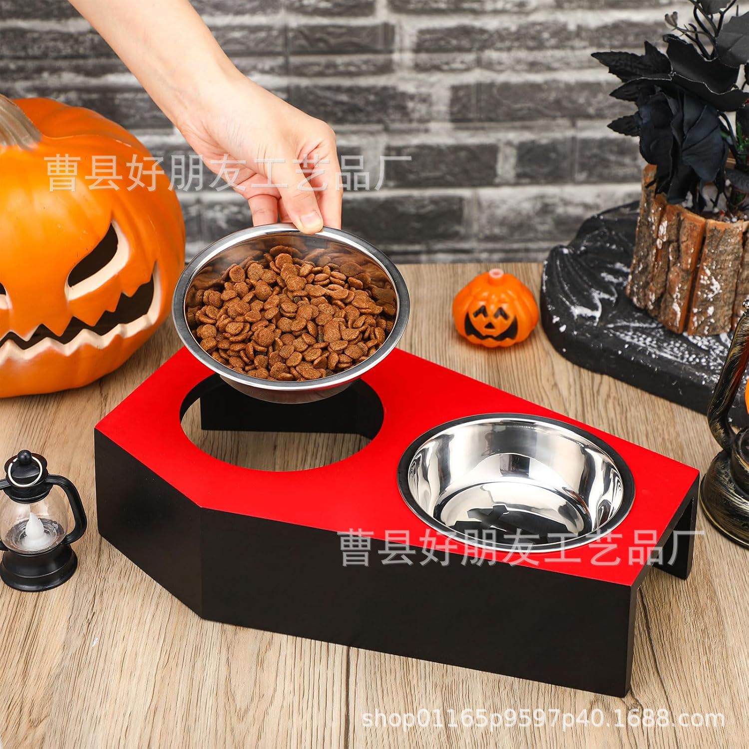 나무 애완 동물 그릇 랙 할로윈 관 피더 더블 그릇 랙 먹이 랙 목 보호 애완 동물 개 고양이 그릇 랙