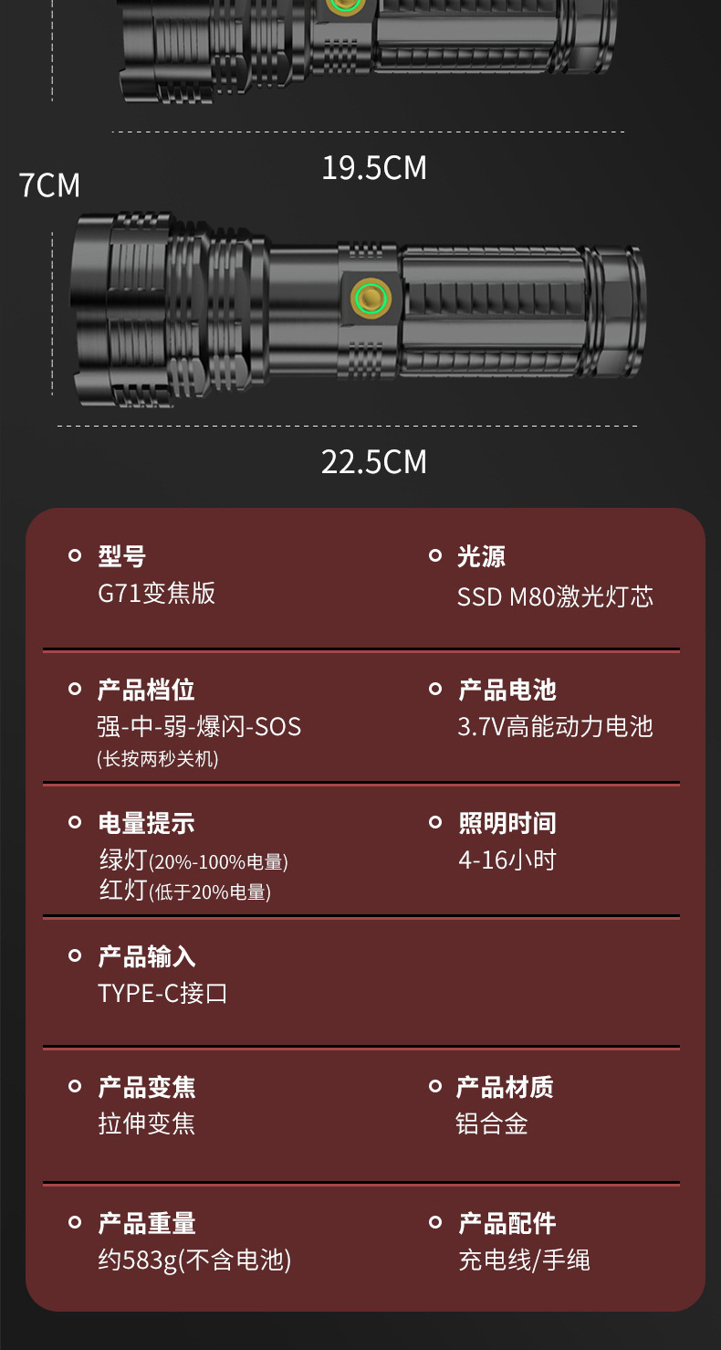 레이저 총 초강력 빛 손전등 야외 장거리 초고휘도 스포트라이트 레이저 손전등 초장기 수명 조명 비상 조명
