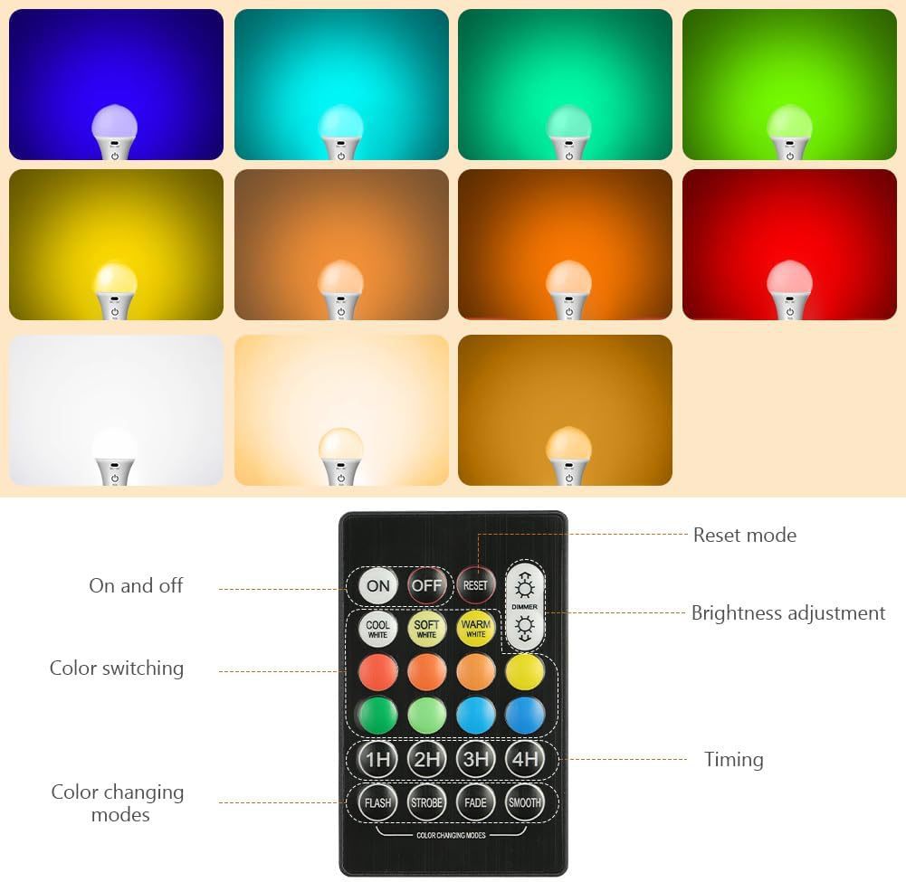 원격 제어 USB 충전식 E27 전구 배선없는 벽 램프 RGB 전구와 국경 LED 색상 변경 전구
