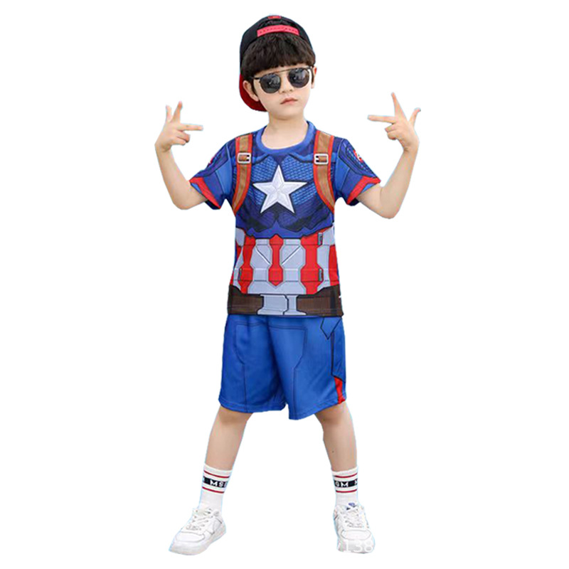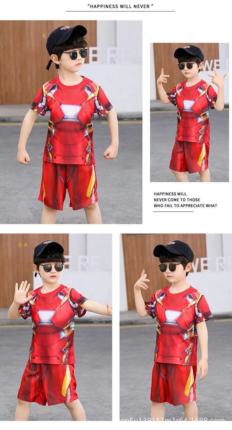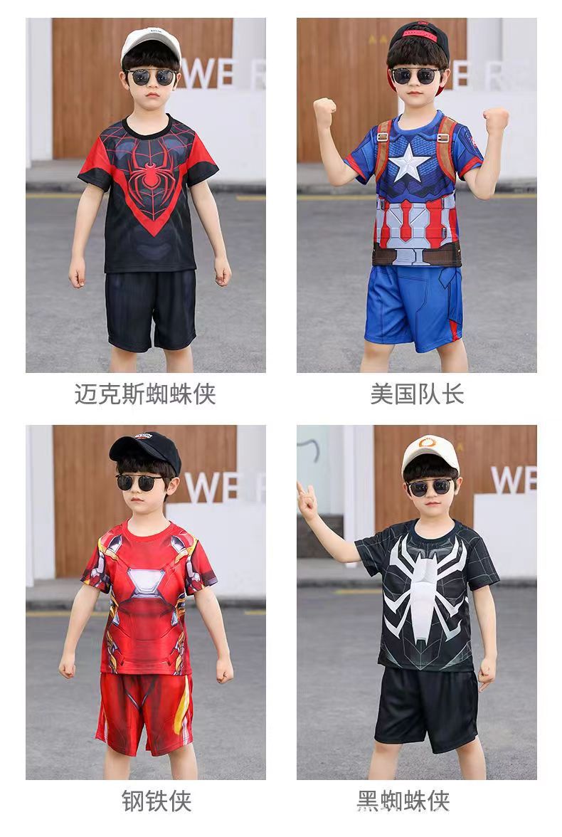 스파이더 맨 캡틴 아메리카 아이언 맨 옷 어린이 여름 짧은 소매 세트 6 일 공동 공연 의상