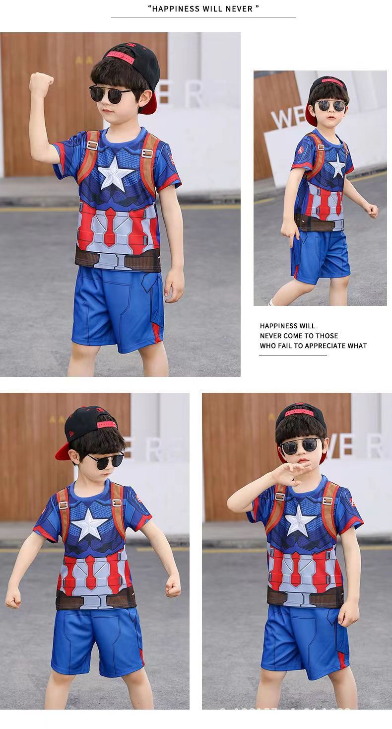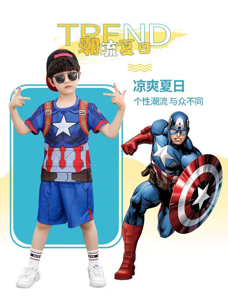 스파이더 맨 캡틴 아메리카 아이언 맨 옷 어린이 여름 짧은 소매 세트 6 일 공동 공연 의상스토어 가기