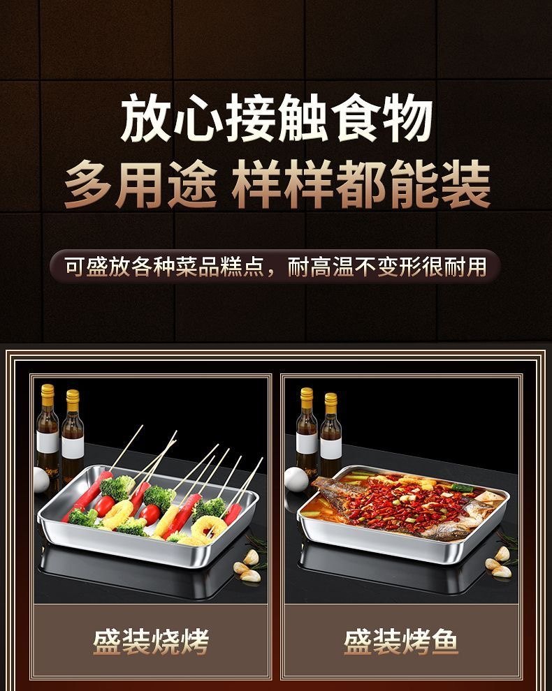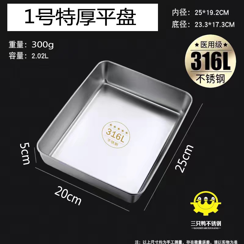 두꺼운 316 스테인레스 스틸 식품 등급 사각형 접시, 차가운 요리 접시 트레이, 찜 케이크 접시, 상업용 다목적 접시, 순수한 평평한 바닥 사각형 그릇스토어 가기