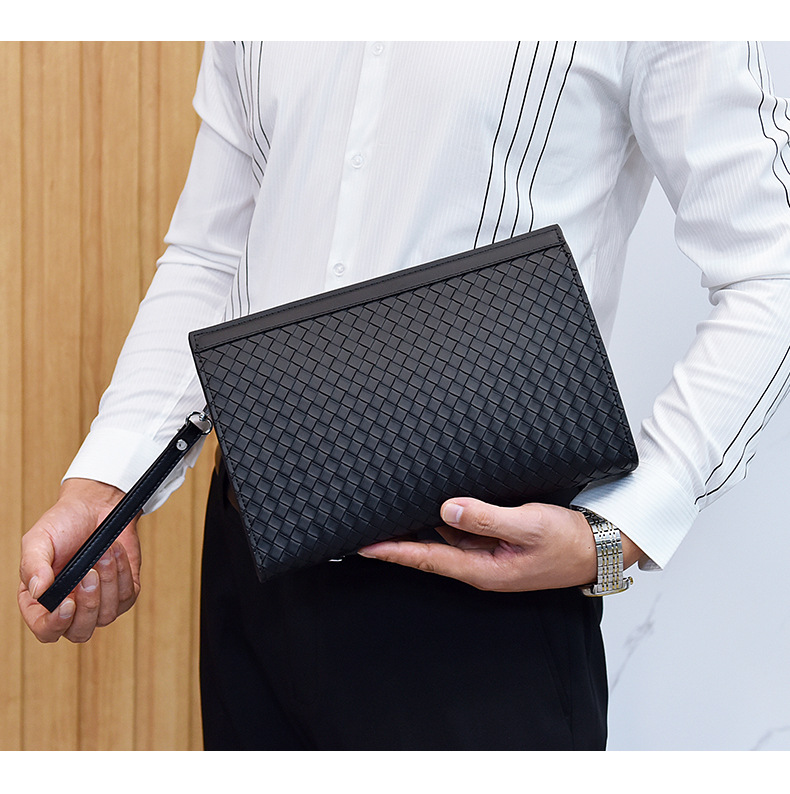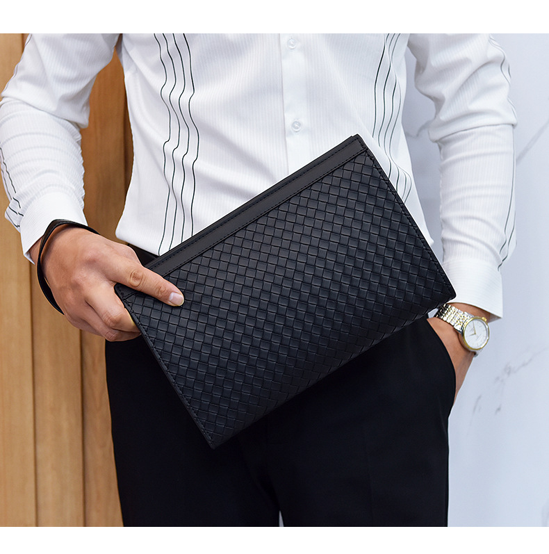 남성 클러치 가방 짠 패턴 핸드백 남성 클램프 가방 대용량 비즈니스 캐주얼 클러치 백 봉투 봉투 파일 가방스토어 가기