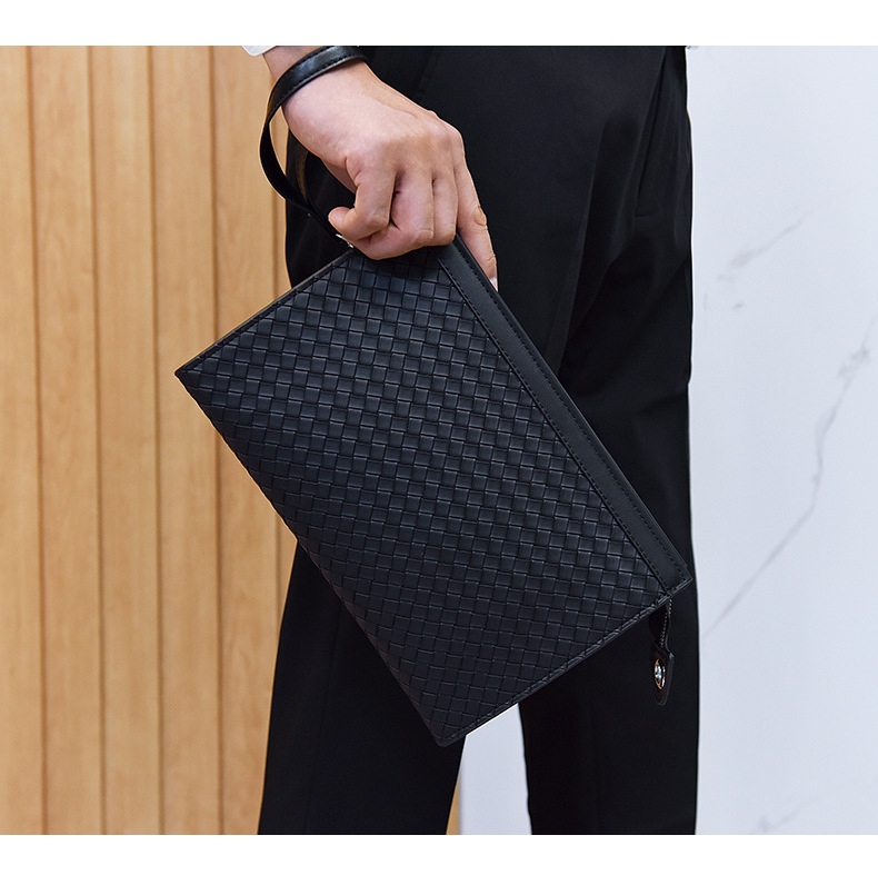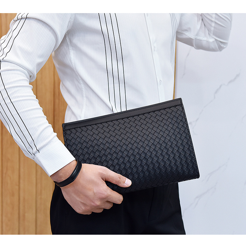 남성 클러치 가방 짠 패턴 핸드백 남성 클램프 가방 대용량 비즈니스 캐주얼 클러치 백 봉투 봉투 파일 가방