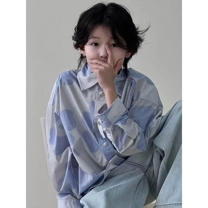 소년 셔츠 봄, 가을 2025 새로운 아동상의 소년 한국 스타일 데일리 캐주얼 라이트 블루 컬러 블록 의류 유행스토어 가기