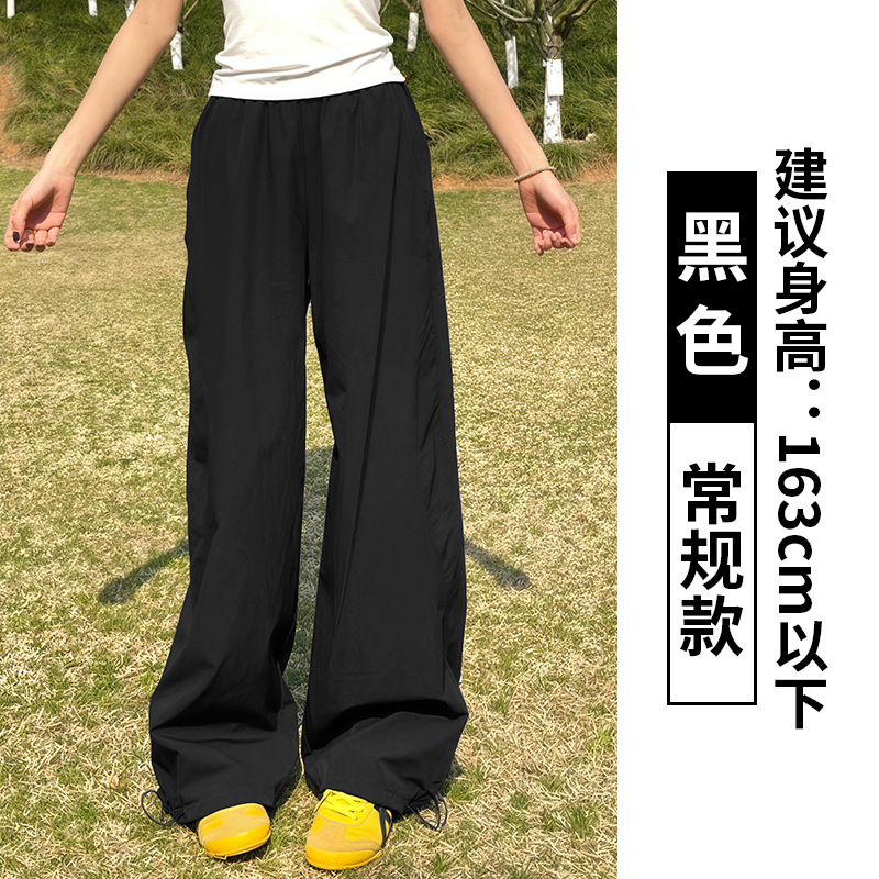 네이비 오버홀 여성의 봄과 가을 2025 새로운 높은 허리 충전 느슨한 넓은 다리 여름 빠른 건조 선 스크린 스포츠 바지스토어 가기