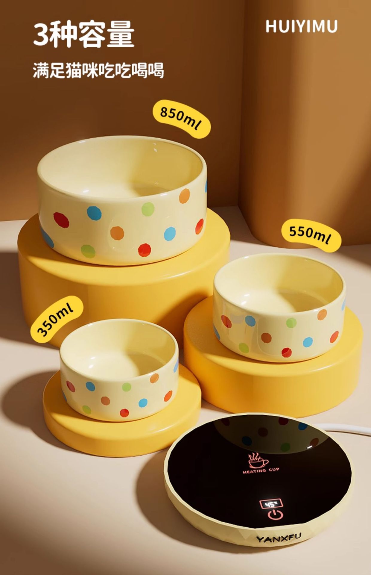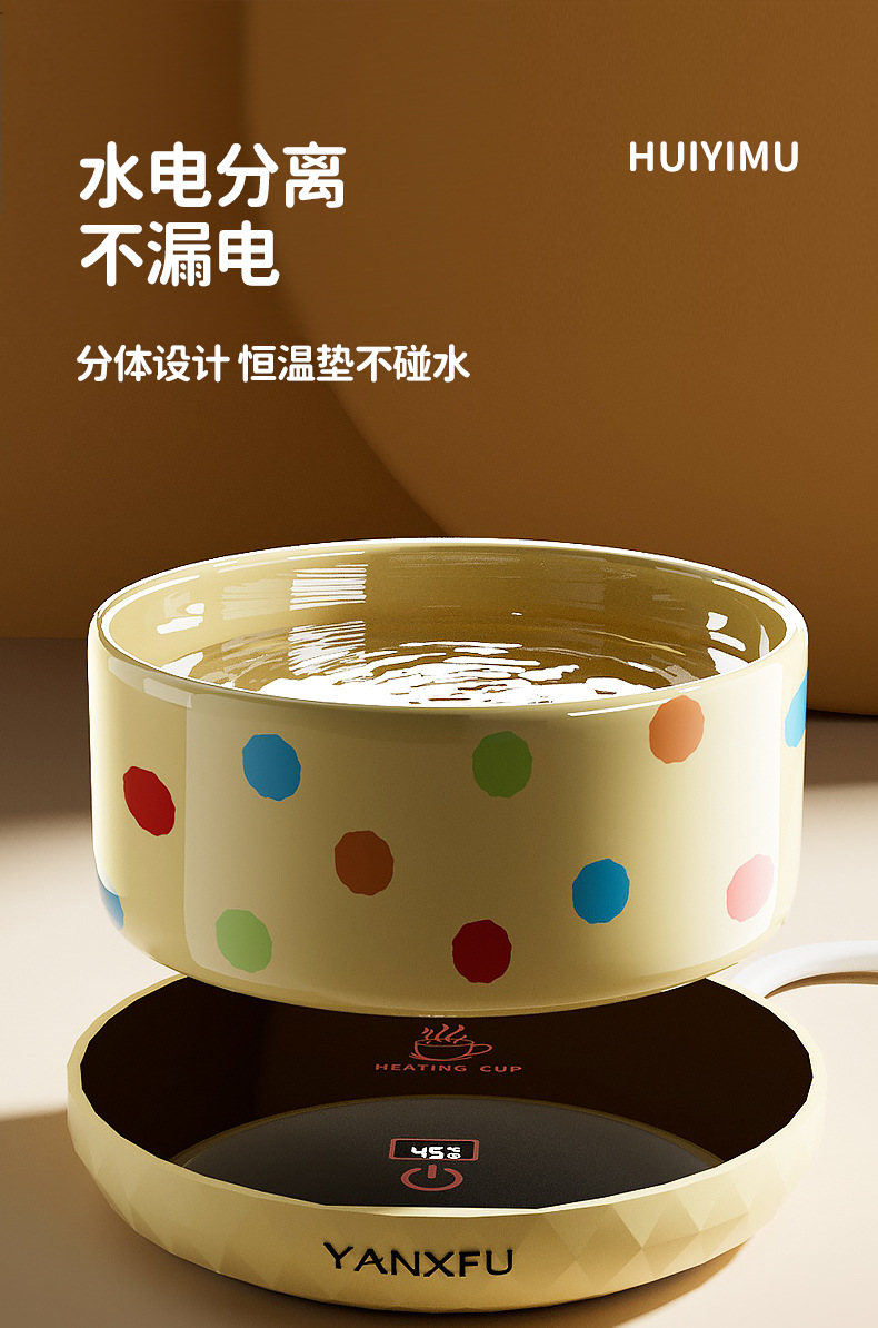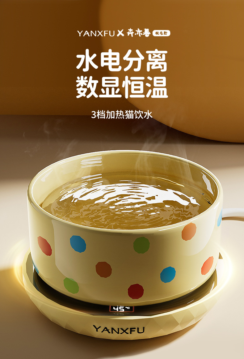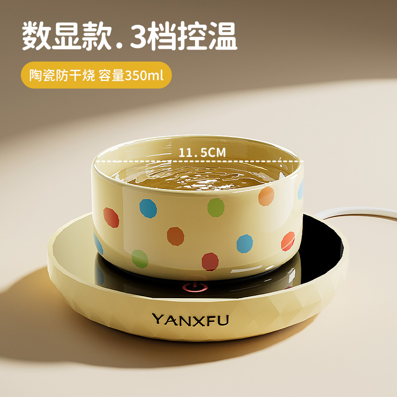 • 커스터드 폴카 도트 350ml 세라믹 그릇 + 디지털 디스플레이 3단 온도 조절 패드