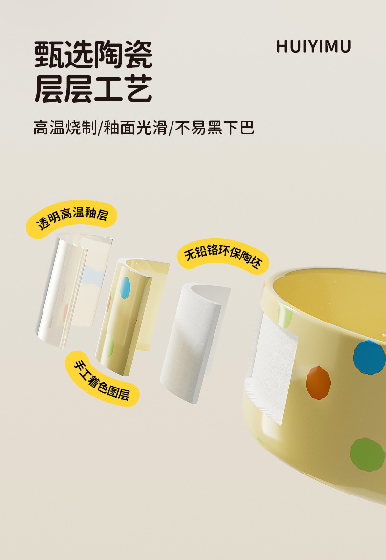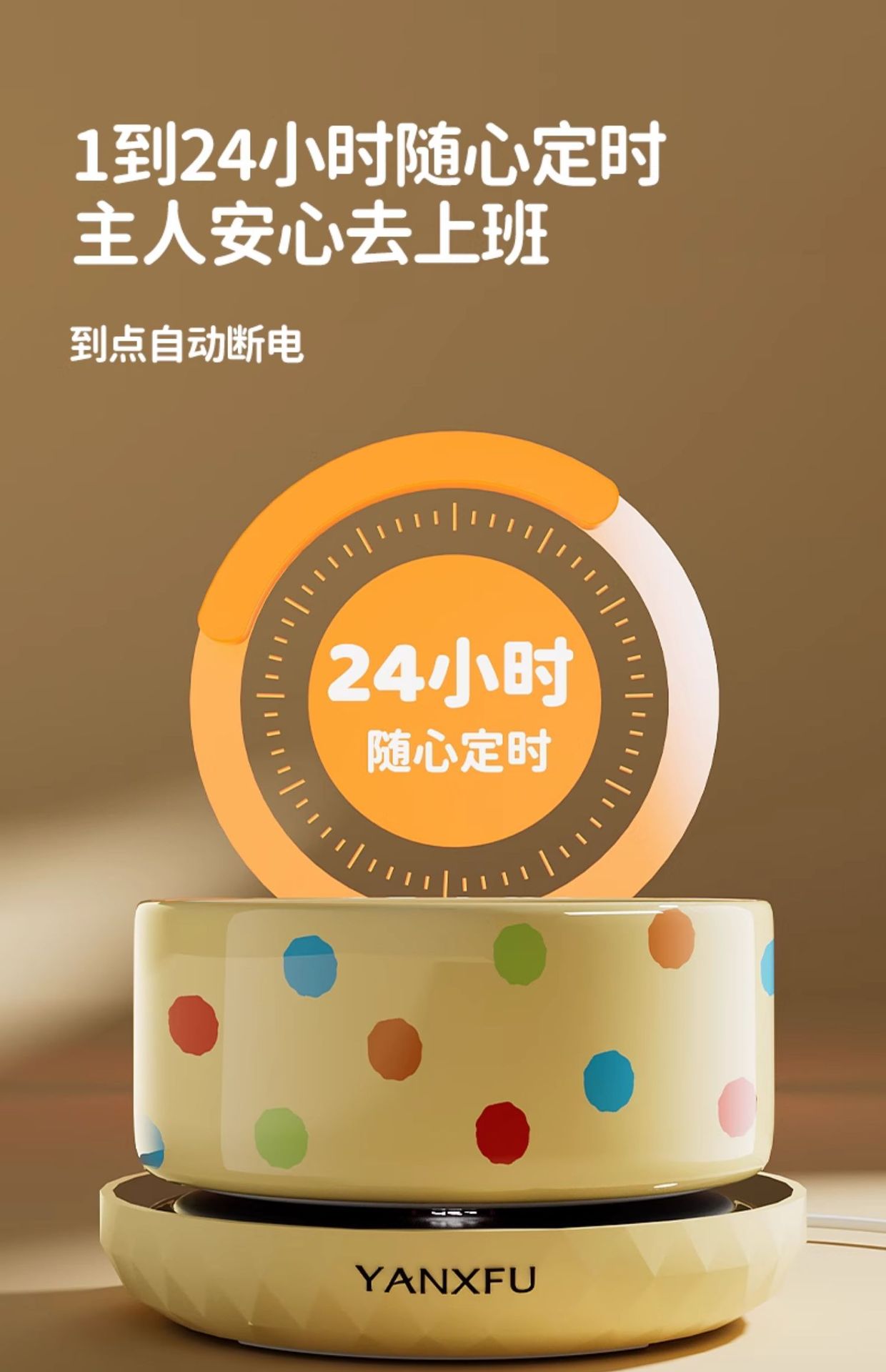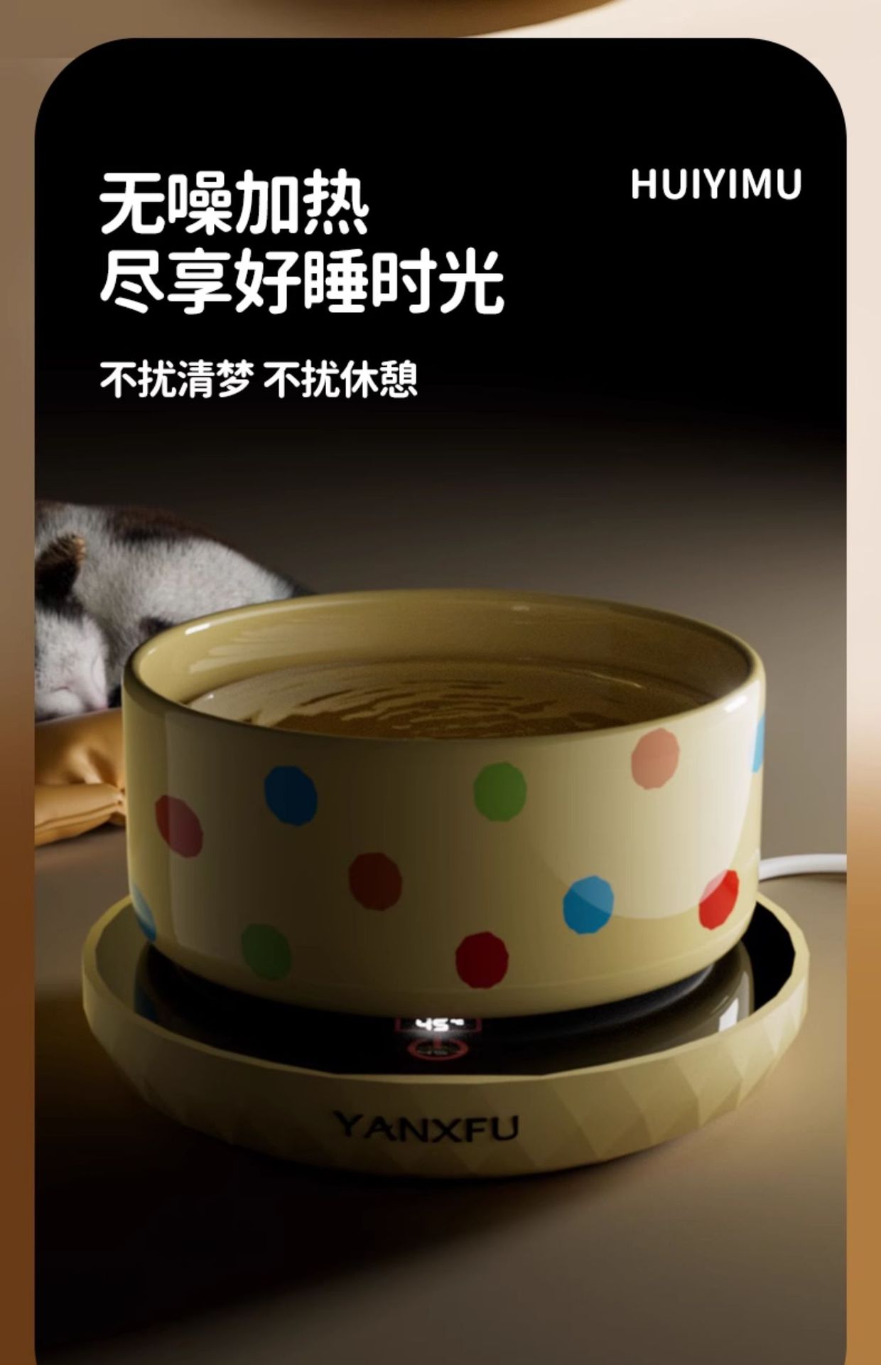 • 커스터드 폴카 도트 350ml 세라믹 그릇 + 디지털 디스플레이 3단 온도 조절 패드