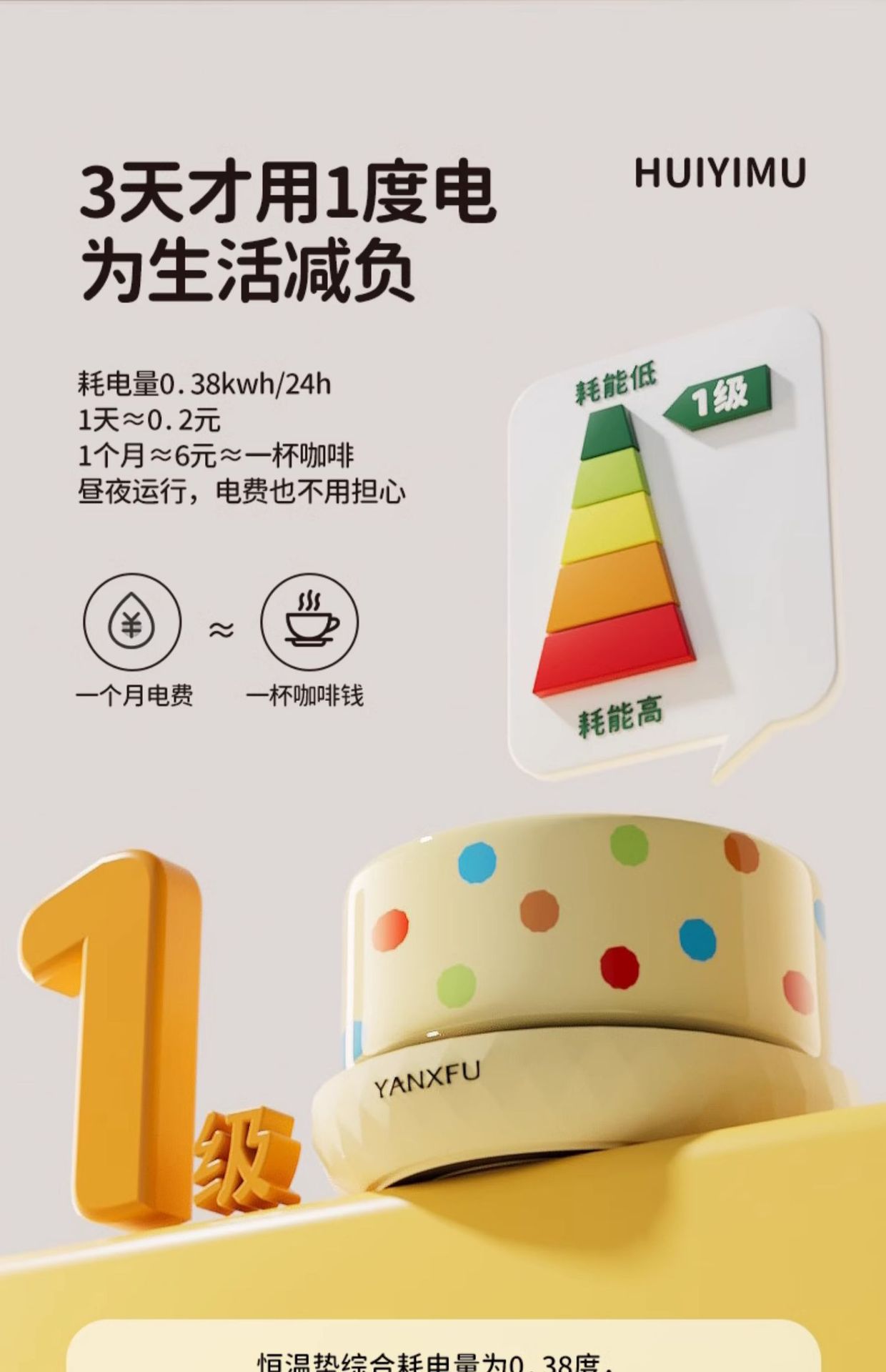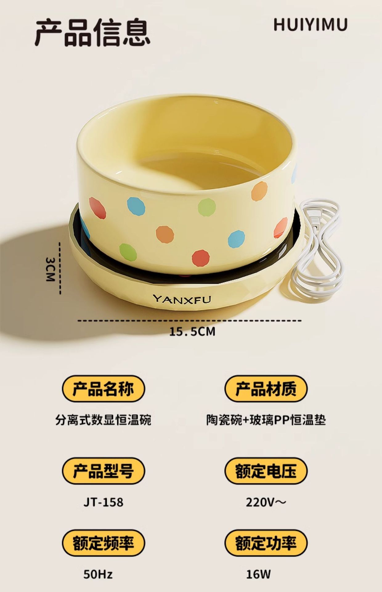• 크림색 물방울 무늬 550ml 세라믹 그릇 + 디지털 디스플레이 3단 온도 조절 패드