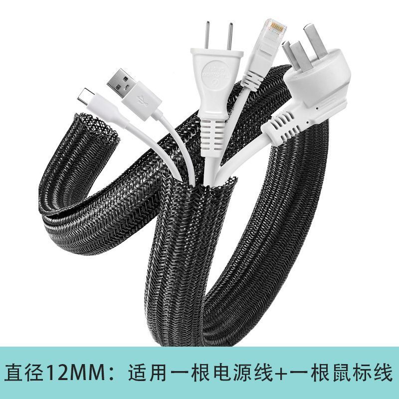 • 검정색 12mm 케이블 관리 튜브 [노트북/올인원 컴퓨터에 적합] - 1.1m롤(길이에 맞게 절단)