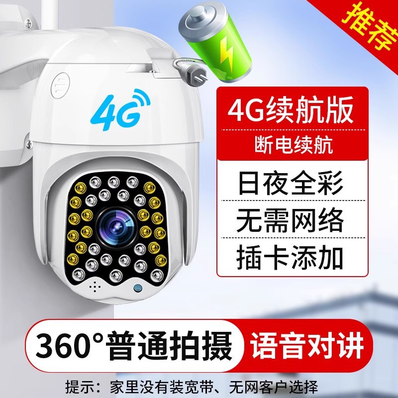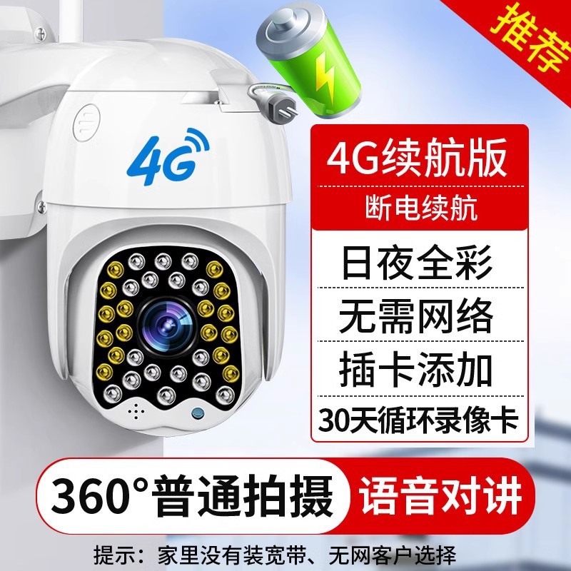 • 4G 카드 배터리 수명 버전 [실외 방수 + 무한 루프 비디오 카드 + 나이트 비전 풀 컬러 + Wi-Fi 사용 불가 + 연장 코드 5m개]