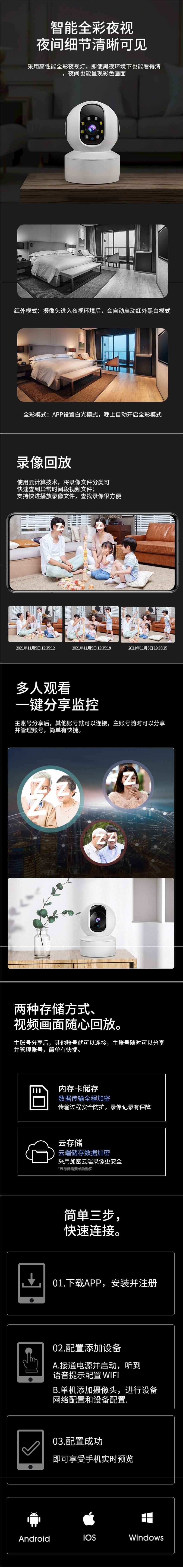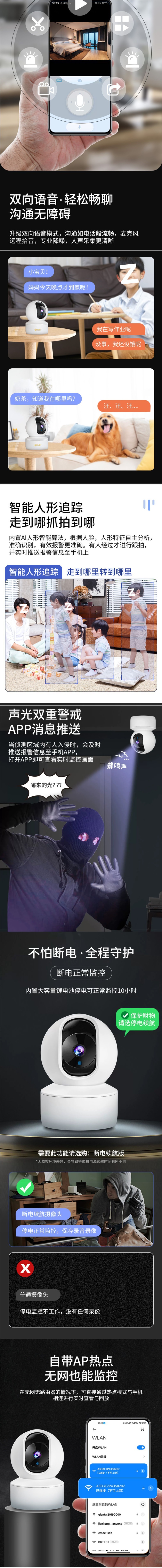 • HD Wi-Fi 버전 + 무한 루프 비디오 카드 [360 ° 파노라마 + 추적 + 인터콤]